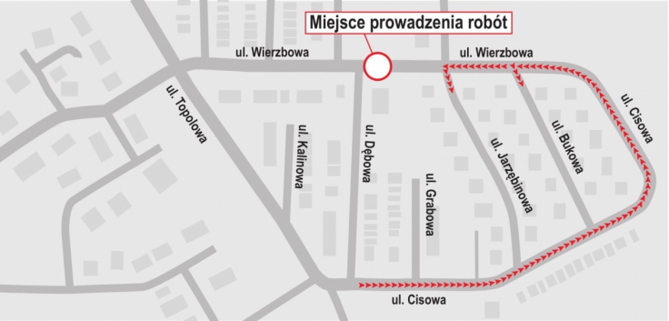 Szczegółowy plan objazdu na rysunku.