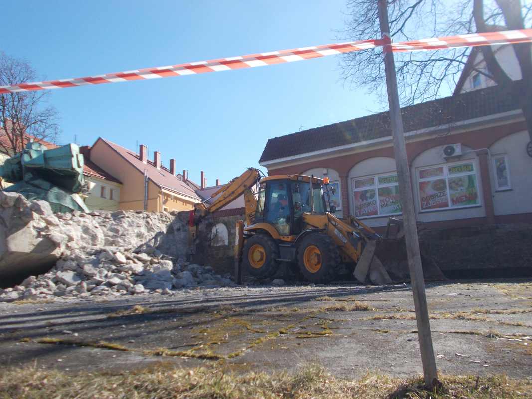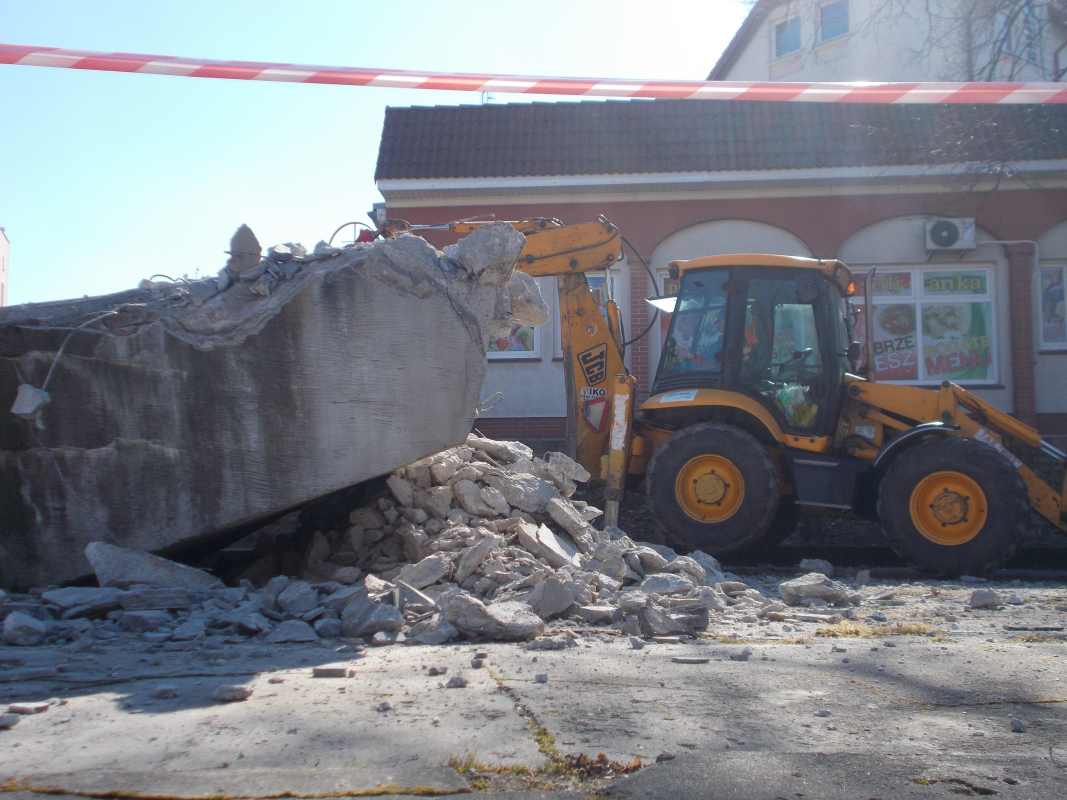 Prace rozbiórkowe rozpoczęły się dzisiaj rano. Zgodnie z umową, wykonawca ma czas na zakończenie zadania do 20 marca, jednak patrząc na tempo, w jakim półwiekowy pomnik zamienia się w gruz, można przypuszczać, że upora się z tym dużo szybciej.