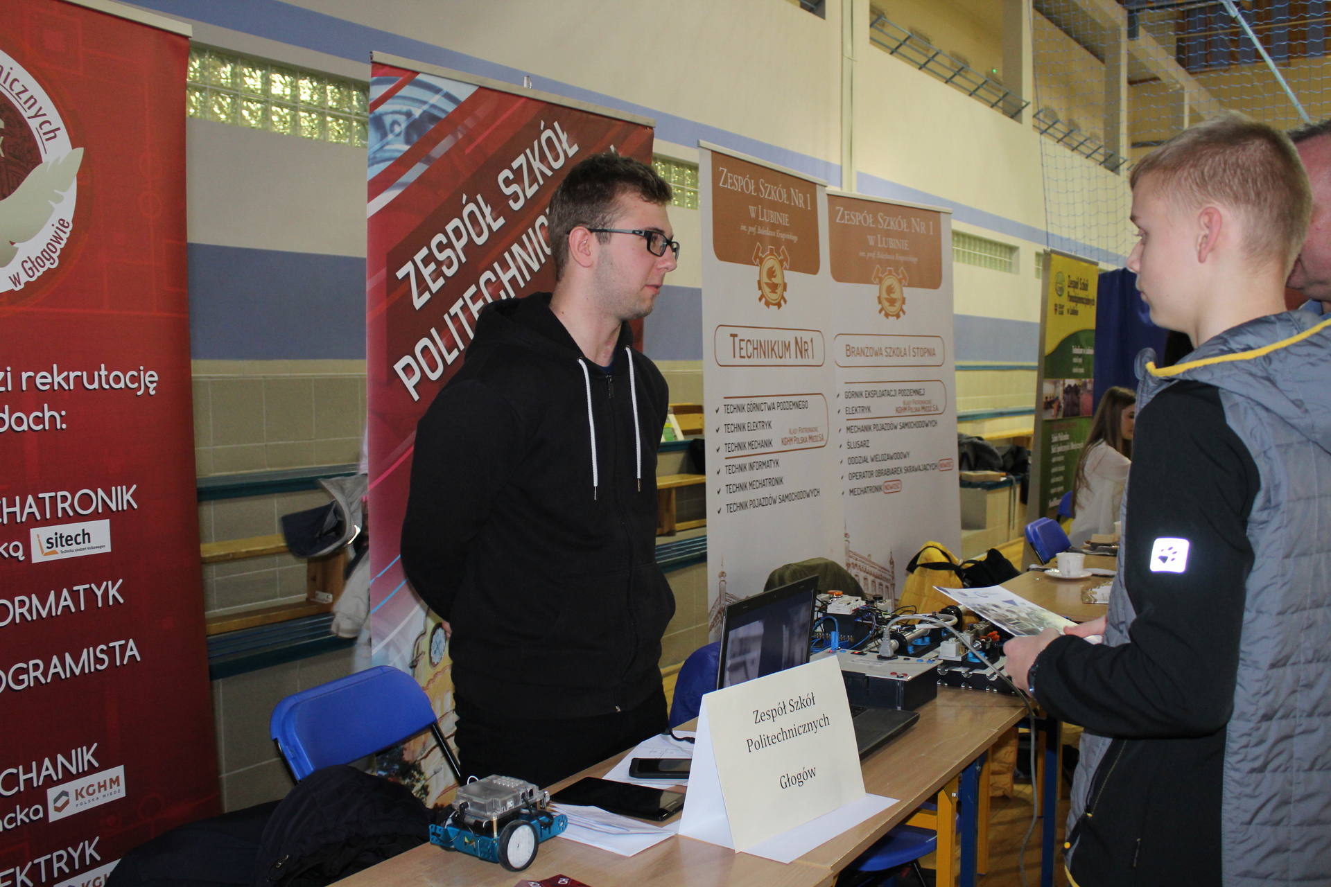 – Nasza szkoła ma szeroką ofertę edukacyjną, ale tak samo ważne jest życie szkoły, dużo się dzieje – przekonywał Krystian Kucharski, uczeń Zespołu Szkół Politechnicznych w Głogowie. – Realizujemy, na przykład, projekt Erasmus+. Inny związany jest z mechatroniką, budujemy roboty i programujemy. Tutaj najczęściej pytają o informatykę i mechatronikę, a na te kierunki najtrudniej jest się dostać.