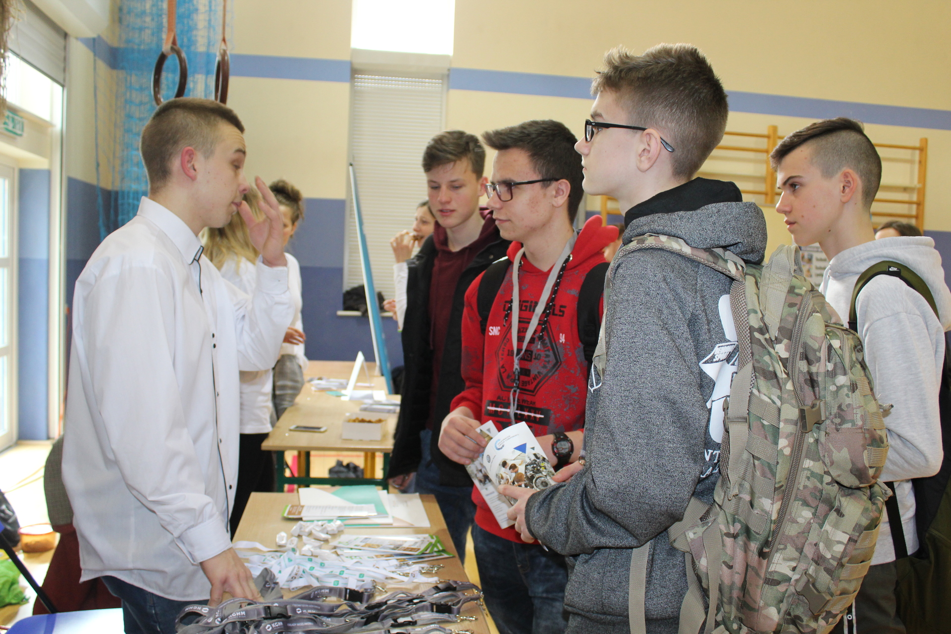 Wystawcy rozdawali ulotki i gadżety, ale przede wszystkim odpowiadali na pytania uczniów.