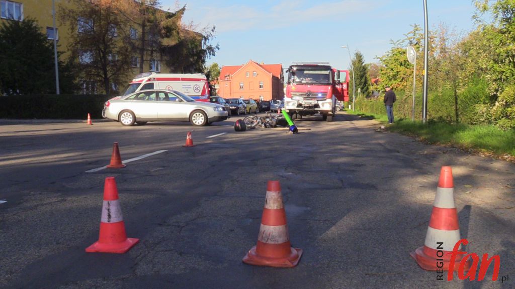 Kierujący audi mężczyzna nie zachował ostrożności włączając się w ulicę Piastowską z drogi osiedlowej. Doszło do zderzenia z motocyklistą. Poszkodowany z licznymi potłuczeniami trafił do JCM. Z ustaleń policji wynika, że uczestnicy zdarzenia byli trzeźwi. Przez kilkadziesiąt minut ul. Piastowska była zamknięta w tym miejscu dla ruchu pojazdów.