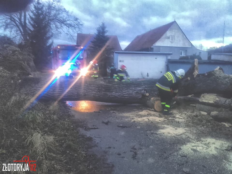 Na miejsce natychmiast zadysponowano strażaków ze złotoryjskiej Jednostki Ratowniczo-Gaśniczej oraz ochotników z Pielgrzymki. Po zabezpieczeniu terenu działań ratownicy przy pomocy pił mechanicznych pocięli drewno na kawałki, udrażniając tym samym ruch na drodze.