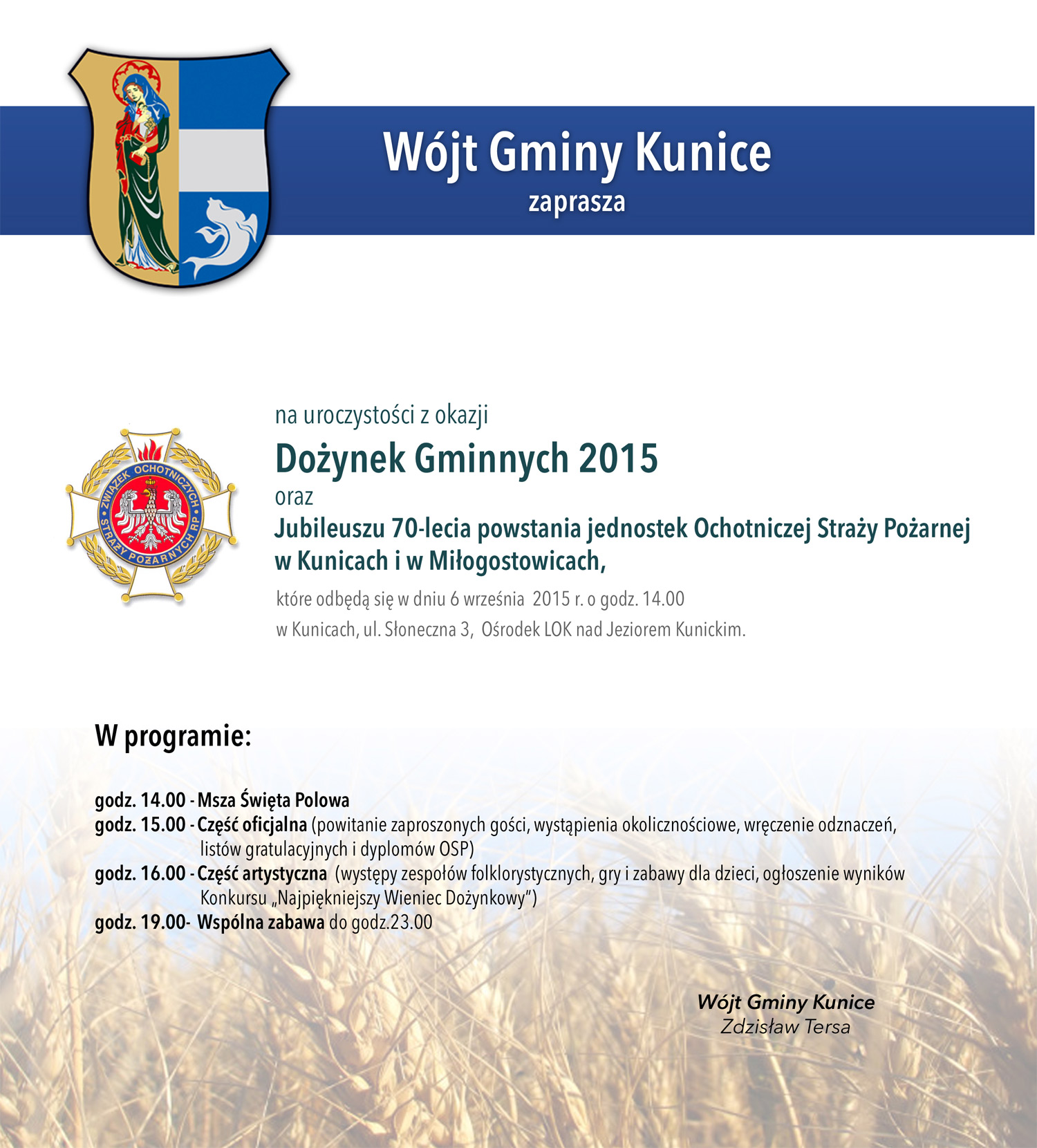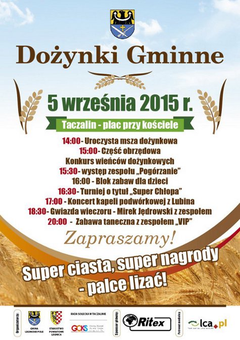 Na 5 września, sobotę, zabawę zaplanowało Legnickie Pole, a na następny dzień – w niedzielę, 6 września – świętować będą Chojnów i Kunice. Najpóźniej, bo 13 września, dożynki planują Prochowice.