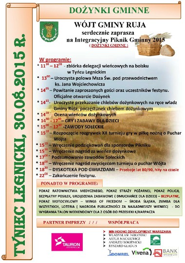 Od najbliższej niedzieli do 13 września w siedmiu miejscowościach powiatu legnickiego odbędą się imprezy dożynkowe. Już jutro święto plonów organizują gminy Krotoszyce, Ruja i Miłkowice.