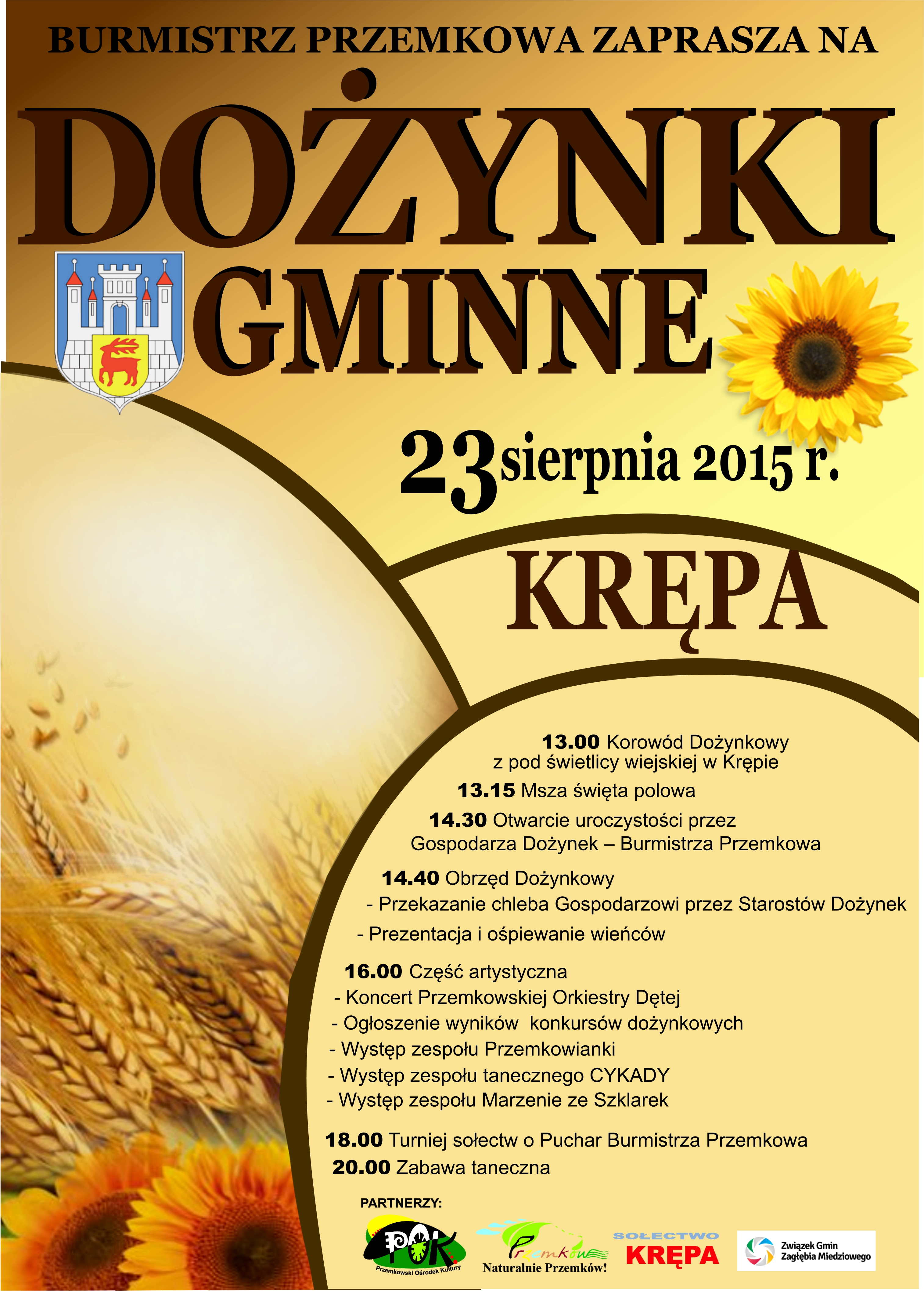 Pierwsze Dożynki w powiecie polkowickim odbędą się 23 sierpnia w gminach Chocianów i Przemków. W pierwszej z nich zorganizowane zostaną w Pogorzeliskach (na zdj. plakat), a w drugiej – w Krępie.