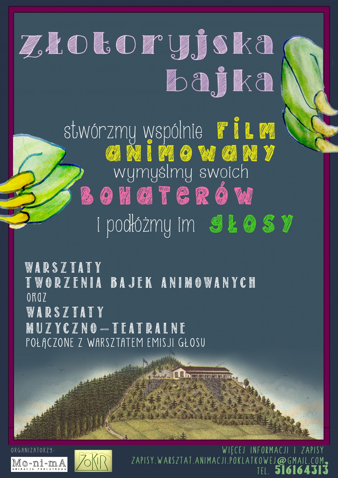 W zajęciach mogą uczestniczyć dzieci w wieku od 7 do 12 lat. Liczba miejsc jest ograniczona do 24. Odbędą się cztery dwugodzinne warsztaty z animacji poklatkowej oraz dwa spotkania teatralno-muzyczne połączone z warsztatem emisji głosu. Zapisy pod adresem: zapisy.warsztat.animacji@gmail.com. Więcej informacji:warsztat.animacji.poklatkowej@gmail.com, tel. 516 164 313.