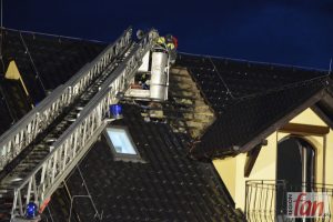 Na miejsce skierowano osiem zastępów straży. Pożar, początkowo ukryty, objął znaczną część dachu budynku, w którym przebywały cztery osoby, w tym dwoje dzieci.