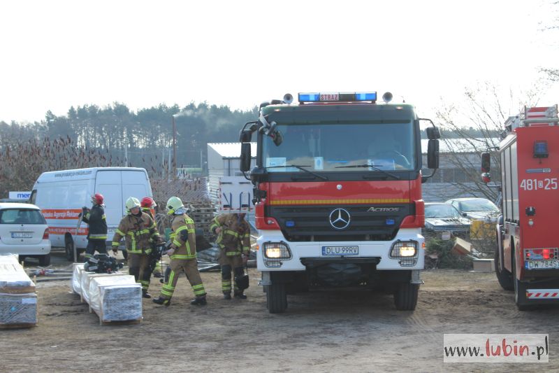 Zgłoszenie o pożarze lubińscy strażacy otrzymali o godzinie 9. Na miejscu zjawiły się trzy jednostki straży pożarnej z Lubina, jeden zastęp z jednostki Ratownictwa Górniczo-Hutniczego i jeden wóz z Ochotniczej Straży Pożarnej w Księginicach.