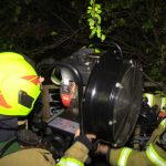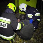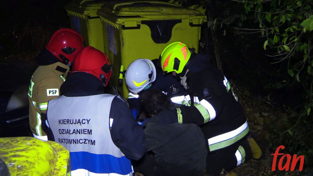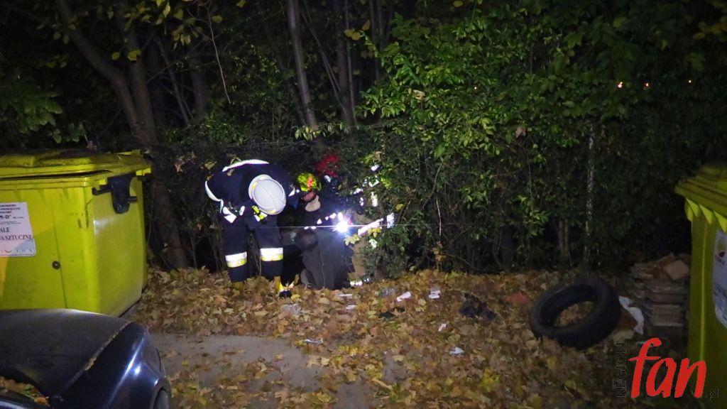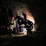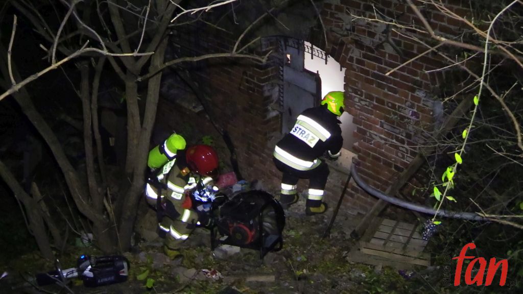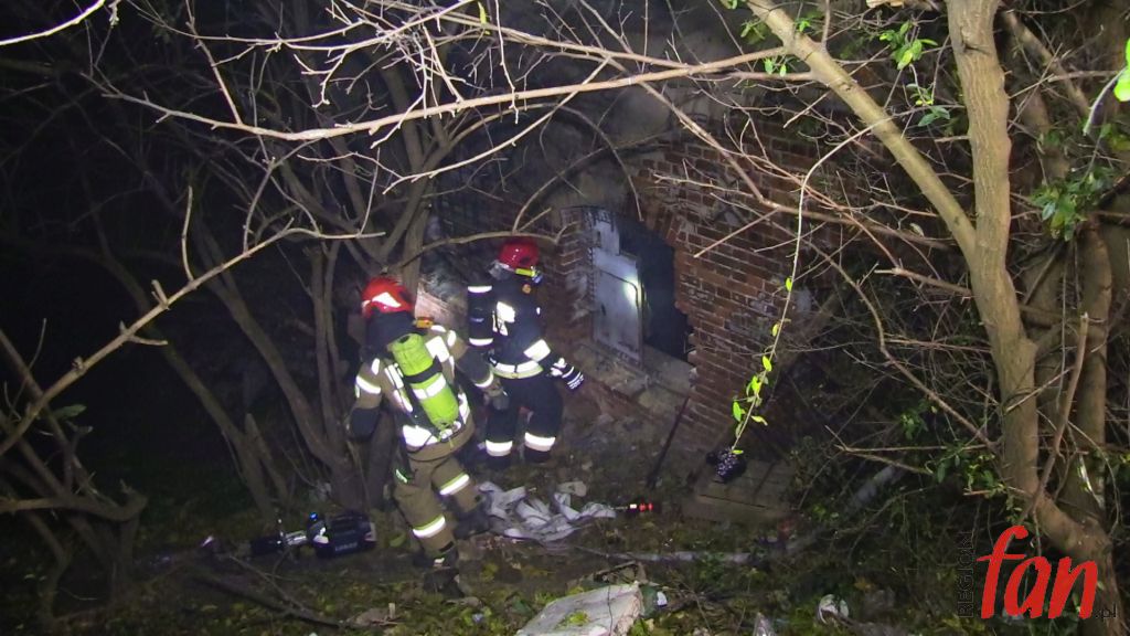Przy pomocy kamery termowizyjnej ustalono, że źródło ognia znajduje się w piwnicy. Aby umożliwić bezpieczne wejście ratowników wycięto kraty w jednym z okien. Istniało podejrzenie, że w opuszczonych pomieszczeniach może ktoś przebywać. Strażacy nie mylili się, na posadzce znaleźli mężczyznę, który był przytomny i miał problemy z oddychaniem. Prawdopodobnie była to osoba bezdomna. Poszkodowanemu podano tlen i przekazano pod opiekę ratowników medycznych. Uratowany mężczyzna trafił do szpitala.