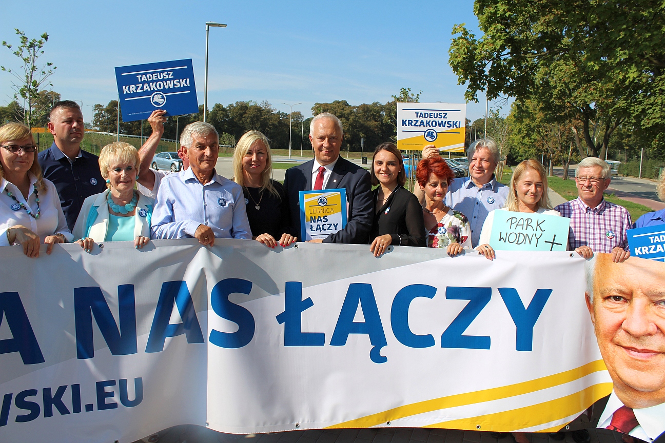 Na zakończenie spotkania z dziennikarzami prezydent i jego świta przedstawili hasło, które będzie znakiem kampanii przed październikowymi wyborami: „Łączy nas Legnica”. Jak podkreśla Krzakowski, jego drużyna skupia kandydatów w różnym wieku i ze zróżnicowanymi osiągnięciami. Sztafetę pokoleniową – jak nazywa przekrój list swojego komitetu – łączy oddanie dla nadkaczawskiego miasta, a on sam, decydując się na start w kolejnych wyborach, stawia na szali ostatnich 16 lat swojego życia zawodowego.
