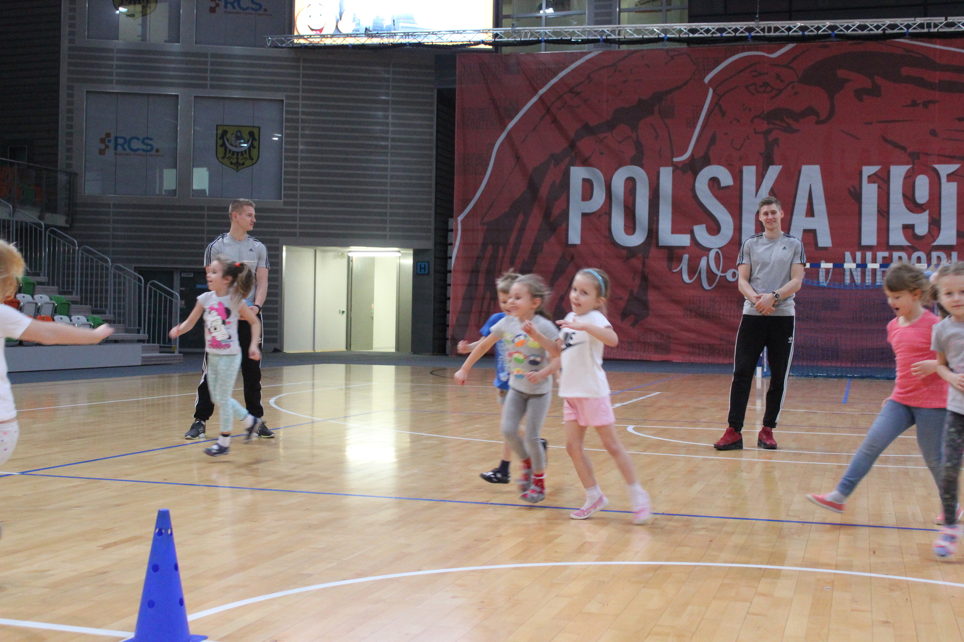 Dziś halę Regionalnego Centrum Sportowego odwiedziły dzieci z Przedszkola Miejskiego nr 6 i Przedszkola Miejskiego nr 13 w Lubinie. Za nami kolejna akcja, promująca aktywny tryb spędzania wolnego czasu wśród najmłodszych.