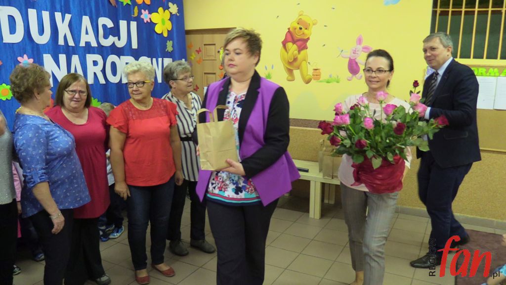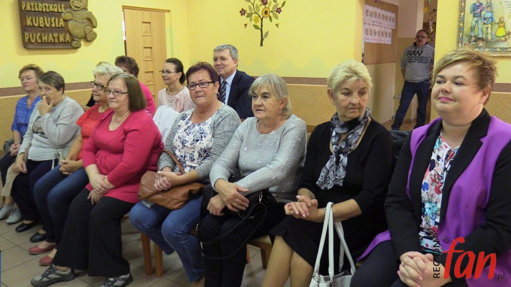 Przedszkole im. Kubusia Puchatka z okazji Dnia Nauczyciela było odświętnie przystrojone. W tym roku wszystkim ważnym uroczystościom towarzyszą biało-czerwone barwy. Tak było i tym razem. W przedstawieniu wzięły udział wszystkie grupy. Dzieci śpiewały i recytowały wiersze z dedykacją dla wszystkich pracowników przedszkola. Panie emerytki ze wzruszeniem oklaskiwały młodych artystów, a na zakończenie otrzymały kwiaty. Życzenia zebranym gościom złożyła dyrektor Maria Żurawska, wiceburmistrz Agnieszka Rynkiewicz oraz naczelnik wydziału oświaty UM, Wiesław Szymczyk.