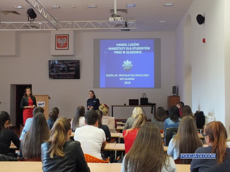 Nie jestem rzeczą! Mną się nie handluje! Mnie się dobrze traktuje! – pod takim hasłem głogowska policja przeprowadziła cykl zajęć i spotkań ze studentami oraz uczniami szkół średnich. Zajęcia odbyły się w ramach XII Europejskiego Dnia Walki z Handlem Ludźmi.