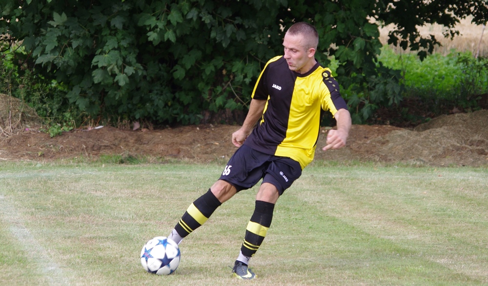 W drugiej części meczu kibice uświadczyli jeszcze jedno trafienie, którego autorem został Daniel Pawlusiński. Trener Przyszłości – Jan Skarbek nie mógł skorzystać z usług kilku podstawowych zawodników, którzy na co dzień stanowią o sile Przyszłości. Mowa tu o m. in o Adamie Pałce, który testowany jest przez IV-ligowego Górnika Złotoryja, swoich synów (Krystiana i Patryka) a także Krzysztofa Piotrowskiego, któremu skończyło się wypożyczenie z Orła Wojcieszyn. Szansę pokazania się otrzymało jednak kilku dotychczasowych reprezentantów zespołu rezerw, który w tym sezonie zarząd Przyszłości postanowił nie zgłaszać do rozgrywek B-klasy.
