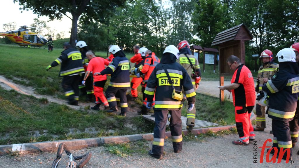 Nieszczęśliwie zakończyła się przejażdżka rowerem po Wąwozie Myśliborskim dla 15-letniego chłopca. Zjeżdżając z góry, stracił panowanie nad rowerem, upadł i doznał licznych obrażeń. Ratownicy podjęli decyzję o wezwaniu Lotniczego Pogotowia Ratunkowego.