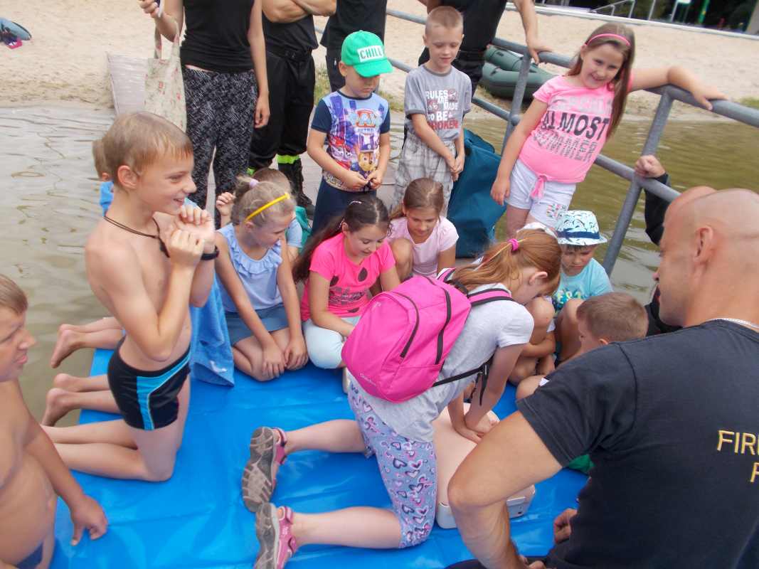 Dzieci chętni brały udział w zajęciach, które odbyły się w ramach ogólnopolskiej akcji „Kręci mnie bezpieczeństwo nad wodą”..