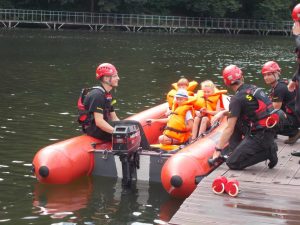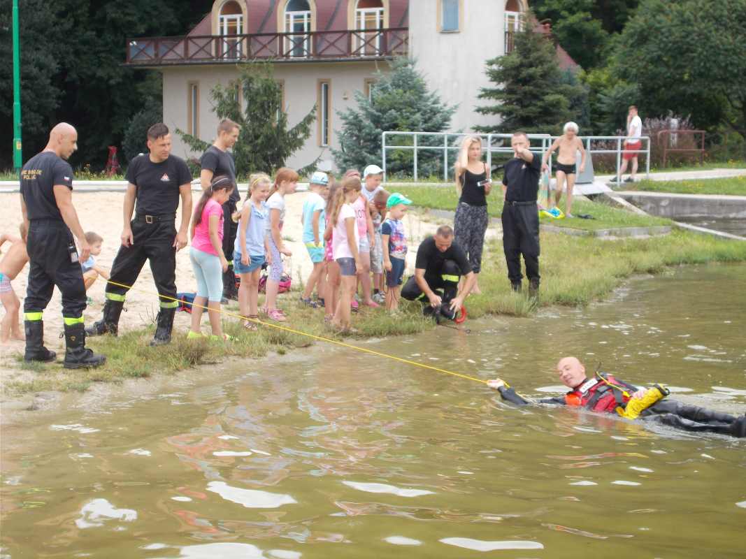 Strażacy z jednostek OSP i JRG w Złotoryi pokazali, jak należy się prawidłowo zachować w sytuacji, gdy zauważymy topielca. Wszystkiemu przyglądały się dzieci, które także chętnie brały udział w pokazowych akcjach. Warto od najmłodszych lat przyswajać tę wiedzę, ponieważ nigdy nie wiadomo, czy i kiedy będziemy musieli ją wykorzystać.