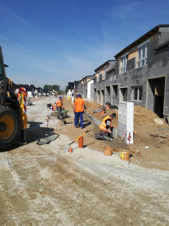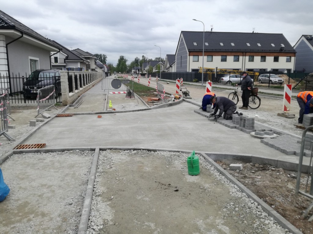 Obecnie kontynuowane są prace związane z odprowadzaniem wód deszczowych i roboty konstrukcyjne drogi. Montowane jest też oświetlenie uliczne. Mieszkańcy tego odcinka mają zapewniony dojazd do domów.