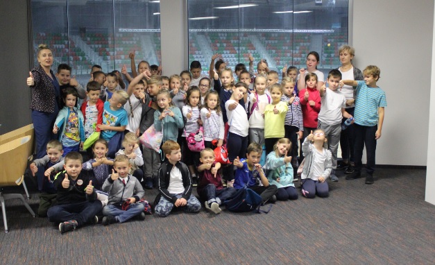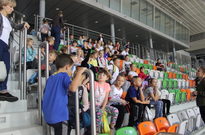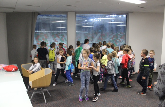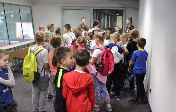 Przed zajęciami dzieci zwiedzały halę, zobaczyły sale konferencyjną i salę VIP, korty do squasha oraz inne zakamarki obiektu RCS. Na koniec młodzi uczestnicy akcji przebrali się w klubowych szatniach w stroje sportowe, po czym przyszedł czas na kulminacyjny moment, czyli WF.