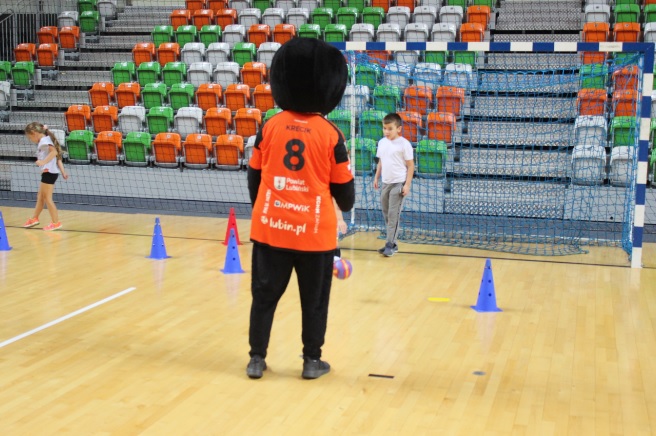Zajęcia prowadzili miedziowi szczypiorniści: Marek Marciniak, Kamil Drobiecki, Monika Wąż i Malwina Hartman. Nie zabrakło oczywiście klubowej maskotki, czyli Krecika. Na koniec akcji na uczniów SP 14 czekała specjalna niespodzianka, przygotowana przez Piekarnię Górzyński, która przygotowała dla uczestników pyszne słodkości. Zawodnicy zapraszali także na swój piątkowy mecz z Piotrkowianinem Piotrków Trybunalski (godz. 18:30).