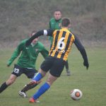 Początek pierwszej, wyrównanej połowy pomyślny dla Kuźni. W dziewiątej minucie w polu karnym gości faulowany ewidentnie został Emilian Borek, a sprawiedliwość z jedenastu metrów skutecznie wymierzył sam poszkodowany. Radość z prowadzenia trwała tylko kilka minut, bo już w szesnastej minucie mieliśmy 1:1. Patryk Borek po jednym z uderzeń przyjezdnych wybił piłkę przed siebie wprost pod nogi rywala, ale dobitkę także zdołał obronić. Jednak po jego interwencji żaden z graczy „Kuzienki” nie zdołał zebrać piłki na „szesnastce” i po trzeciej próbie ze strony Huty miejscowy golkiper skapitulował. Przemkowianie mogli pójść za ciosem chwilę później, ale skutecznie interweniowali Patryk Borek i Kamil Dunaj. Pierwszy z nich obronił strzał zza linii szesnastego metra, a drugi zapobiegł dobitce.