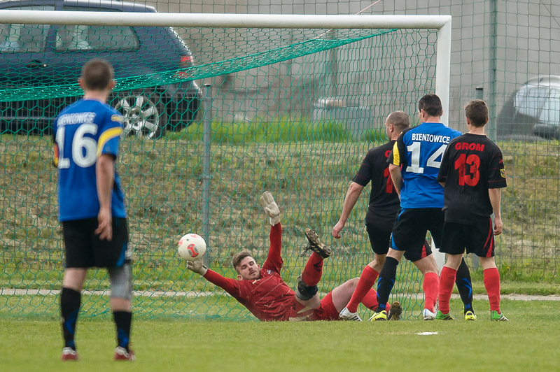 PA3_8018W niedzielę Grom Gromadzyń-Wielowieś odniósł swoje pierwsze wiosenne zwycięstwo w klasie okręgowej, jednak dwa dni później nie był w stanie zanotować kolejnej wygranej. Tym razem drużyna z Gminy Ścinawa przegrała na wyjeździe z Kaczawą Bieniowice 3:2.