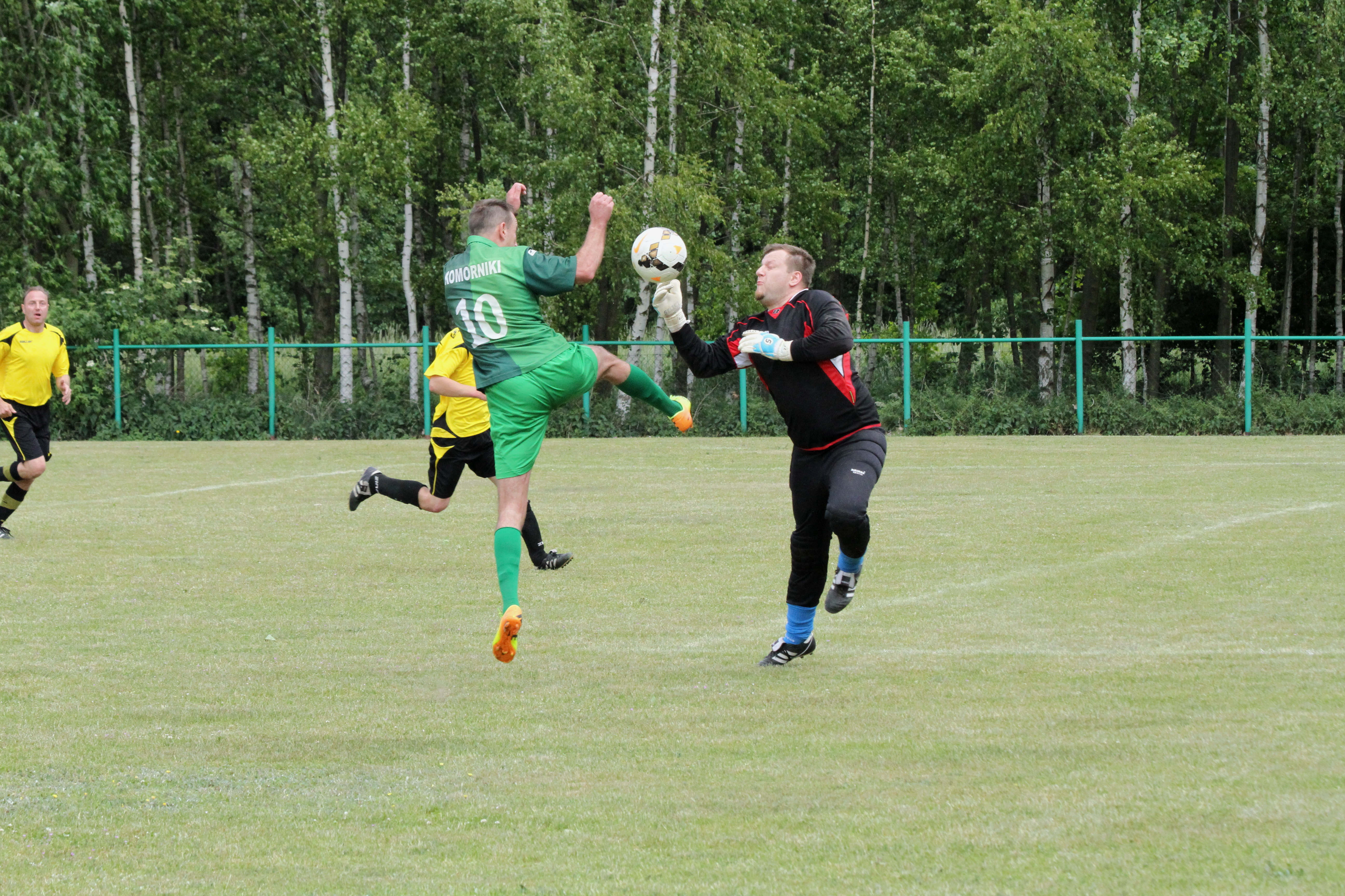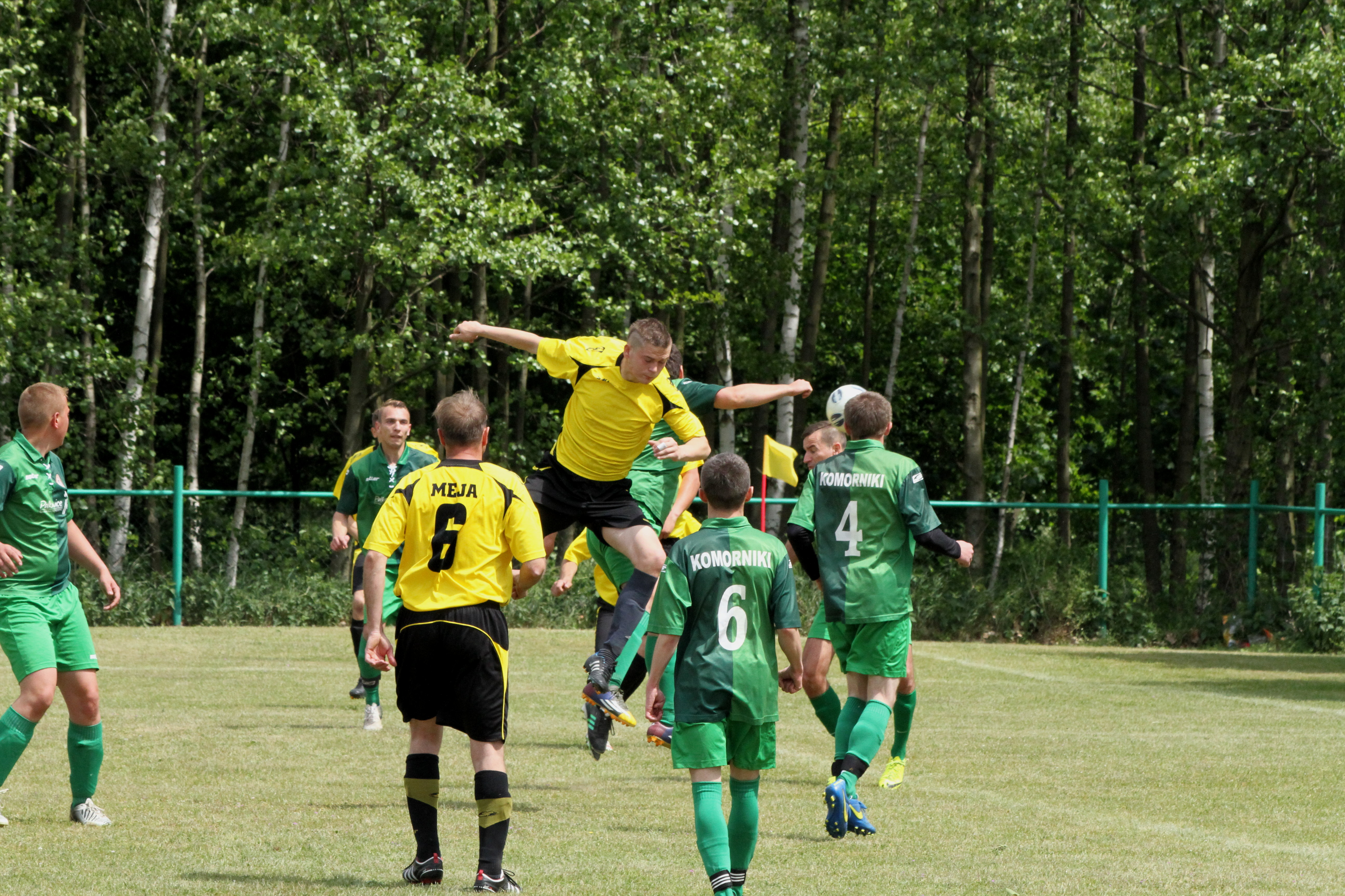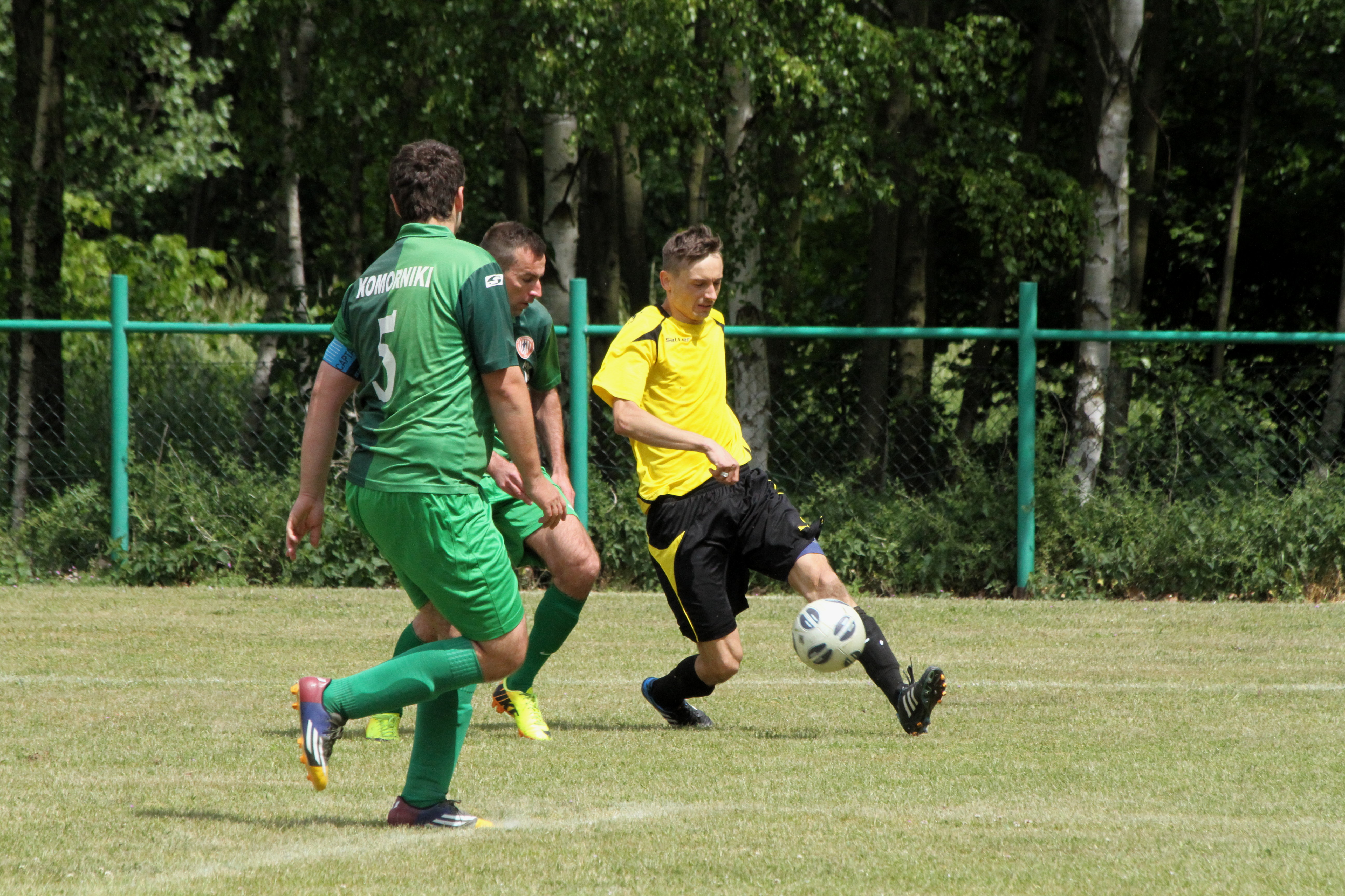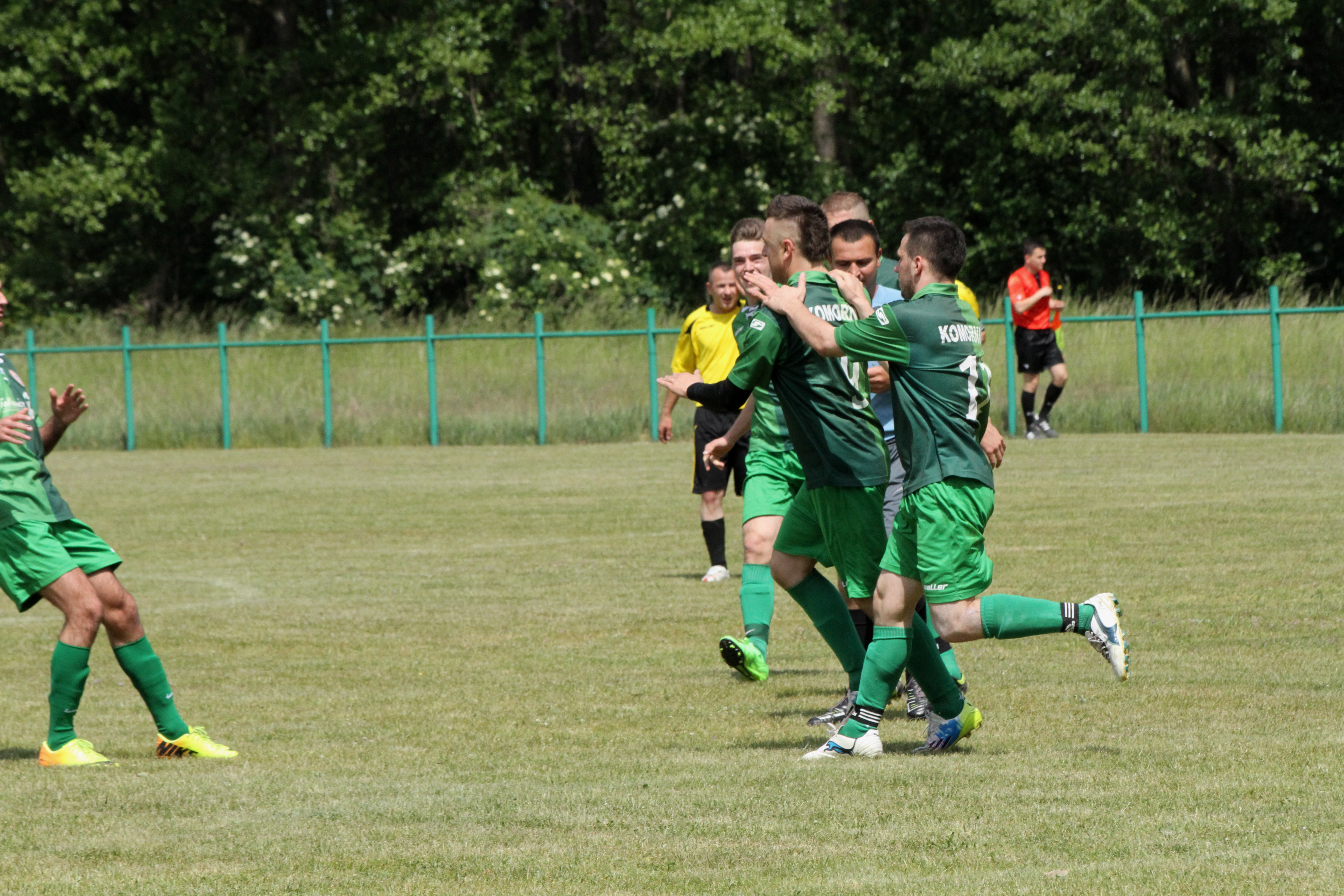 Po upływie kwadransa gry dość nieoczekiwanie w Komornikach „błysnęli” zawodnicy ze Studzionki, którzy jako wyszli na prowadzenie 0:1 i w kolejnych minutach starali się kontrolować spotkanie. Nie było to łatwe, bo coraz lepiej grali zawodnicy miejscowego LZS-u, którzy w boju o awans do A-klasy nie mogli pozwolić sobie na stratę punktów z niżej notowanym rywalem. Gospodarzom jeszcze w pierwszej połowie udało się nie tylko wyrównać, lecz także zejść na przerwę prowadząc 2:1.