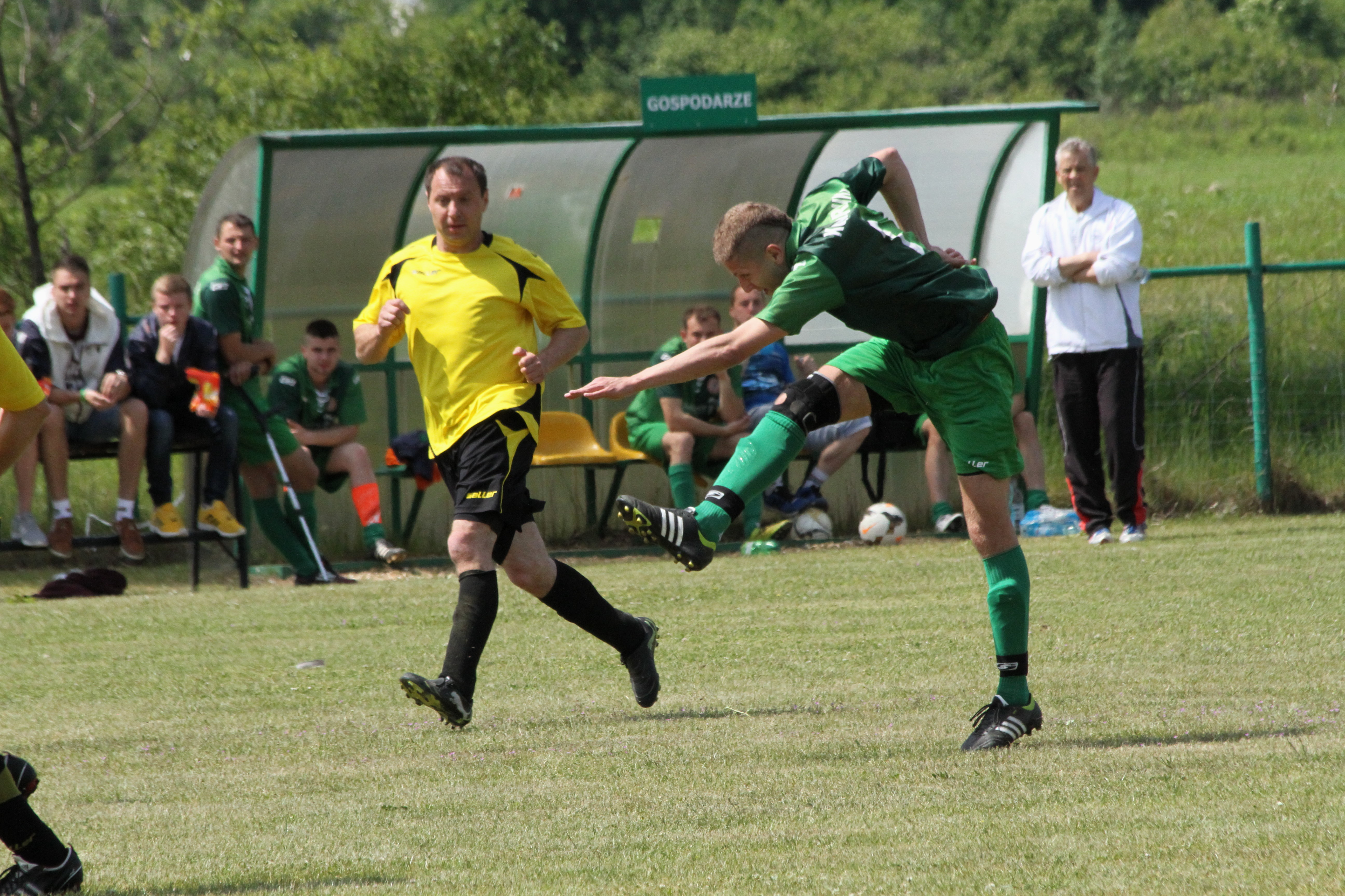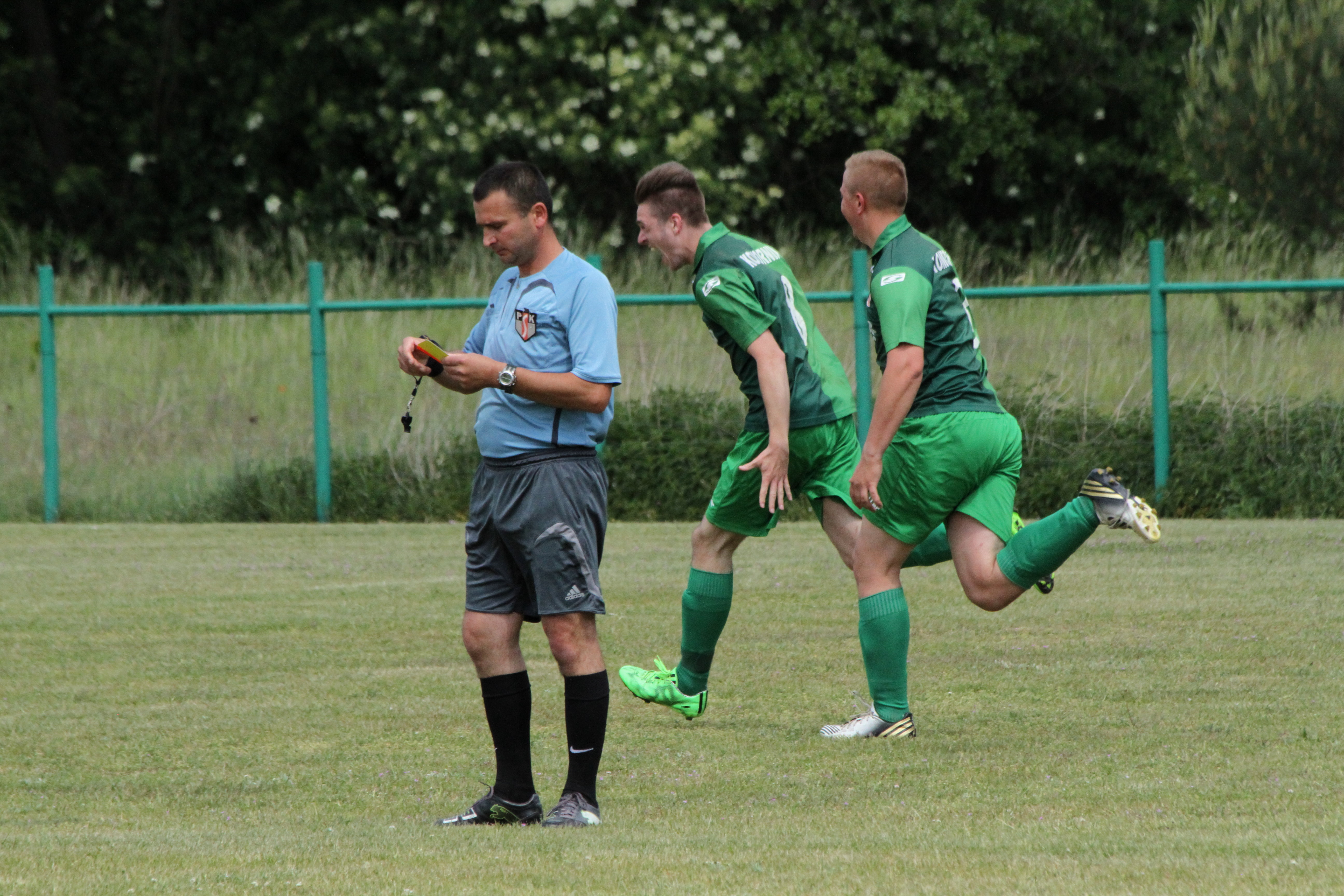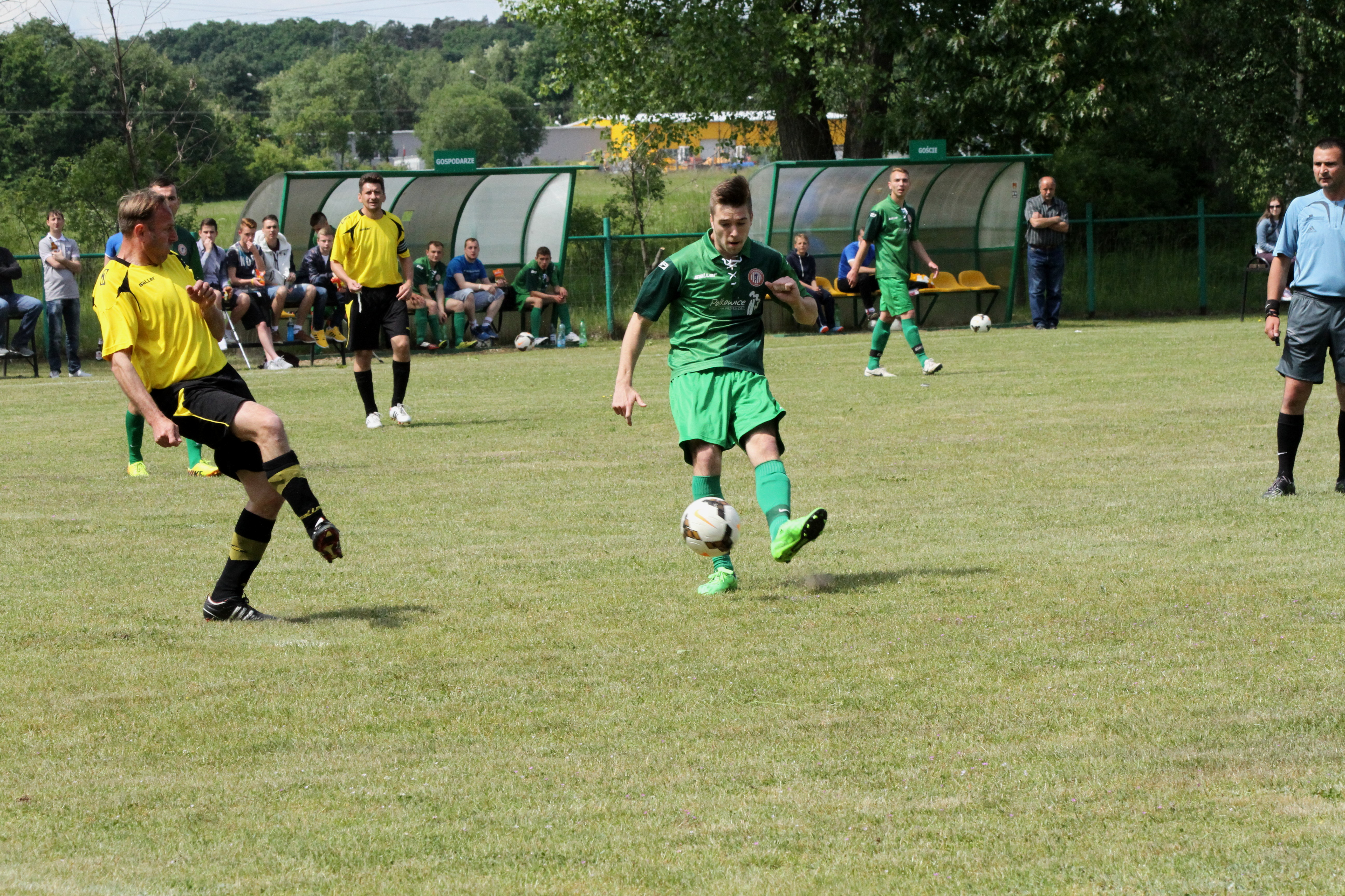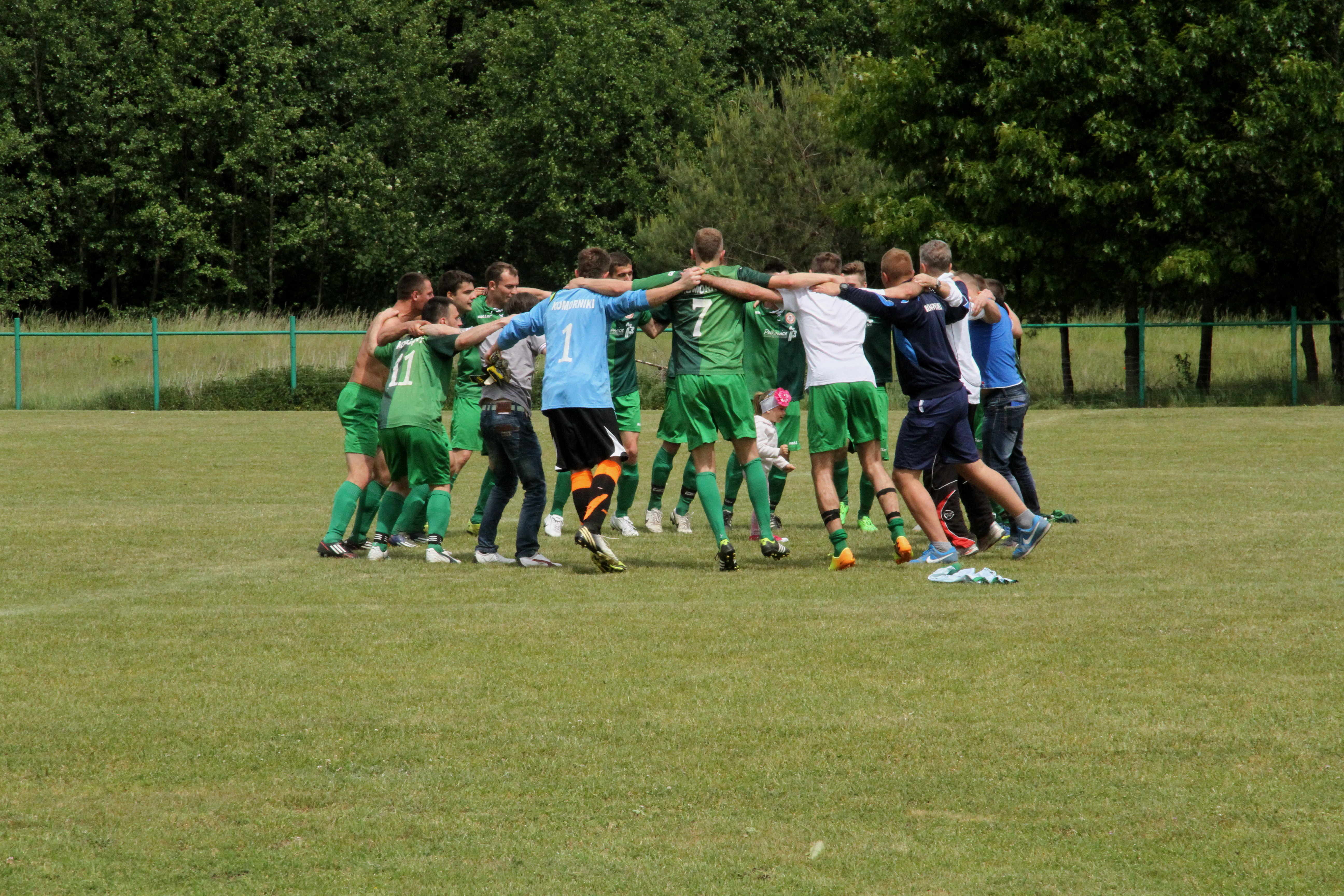 Po upływie kwadransa gry dość nieoczekiwanie w Komornikach „błysnęli” zawodnicy ze Studzionki, którzy jako wyszli na prowadzenie 0:1 i w kolejnych minutach starali się kontrolować spotkanie. Nie było to łatwe, bo coraz lepiej grali zawodnicy miejscowego LZS-u, którzy w boju o awans do A-klasy nie mogli pozwolić sobie na stratę punktów z niżej notowanym rywalem. Gospodarzom jeszcze w pierwszej połowie udało się nie tylko wyrównać, lecz także zejść na przerwę prowadząc 2:1.