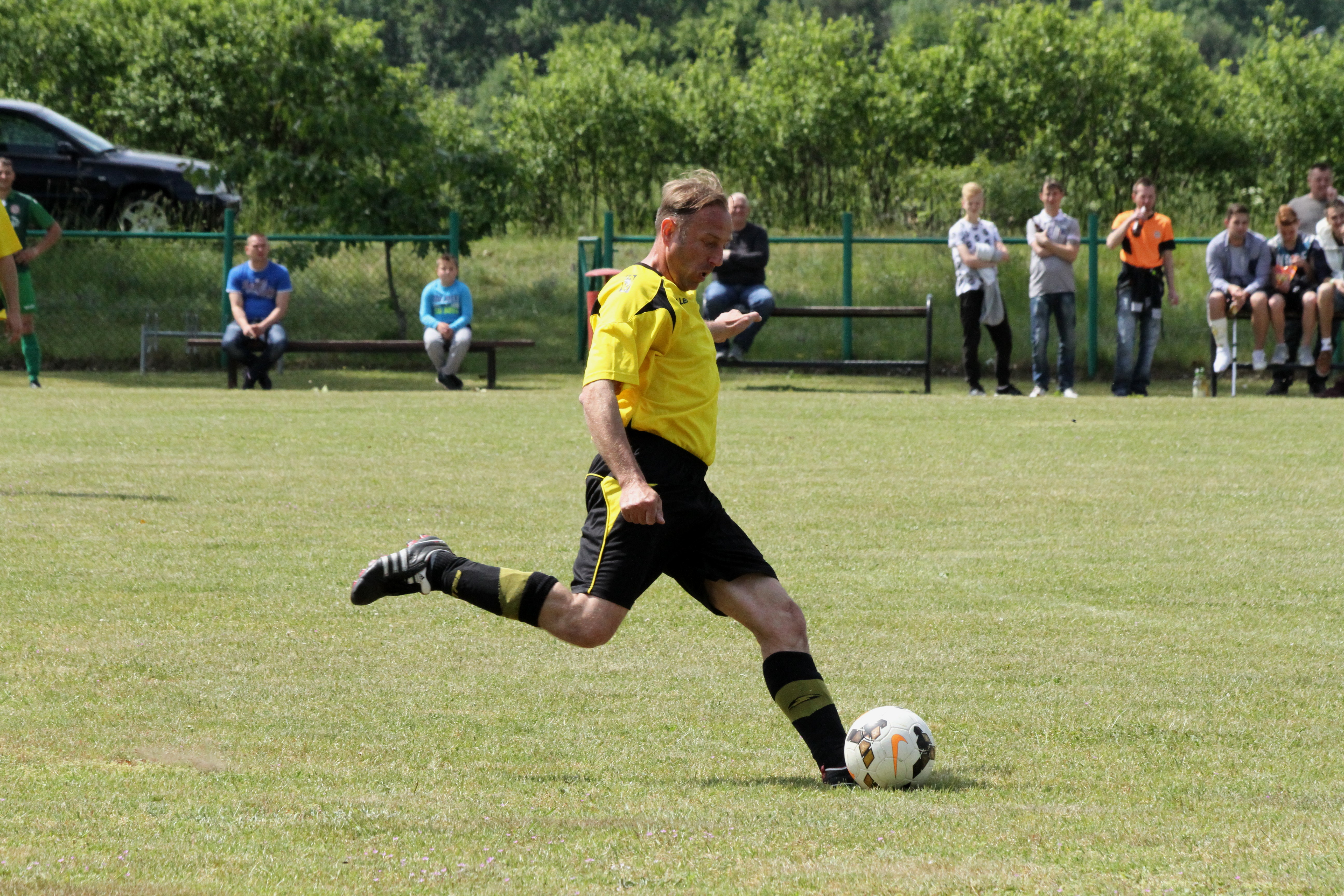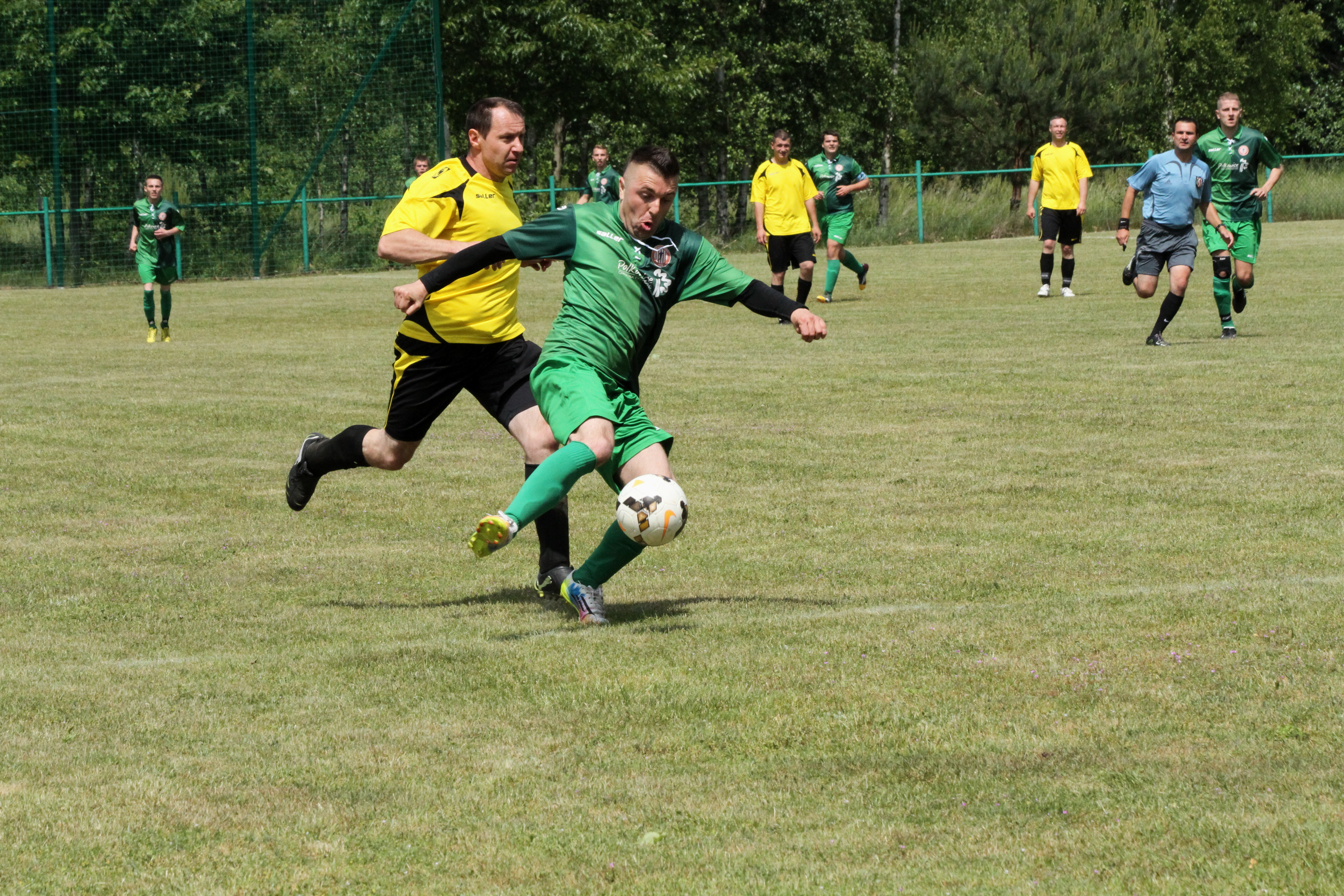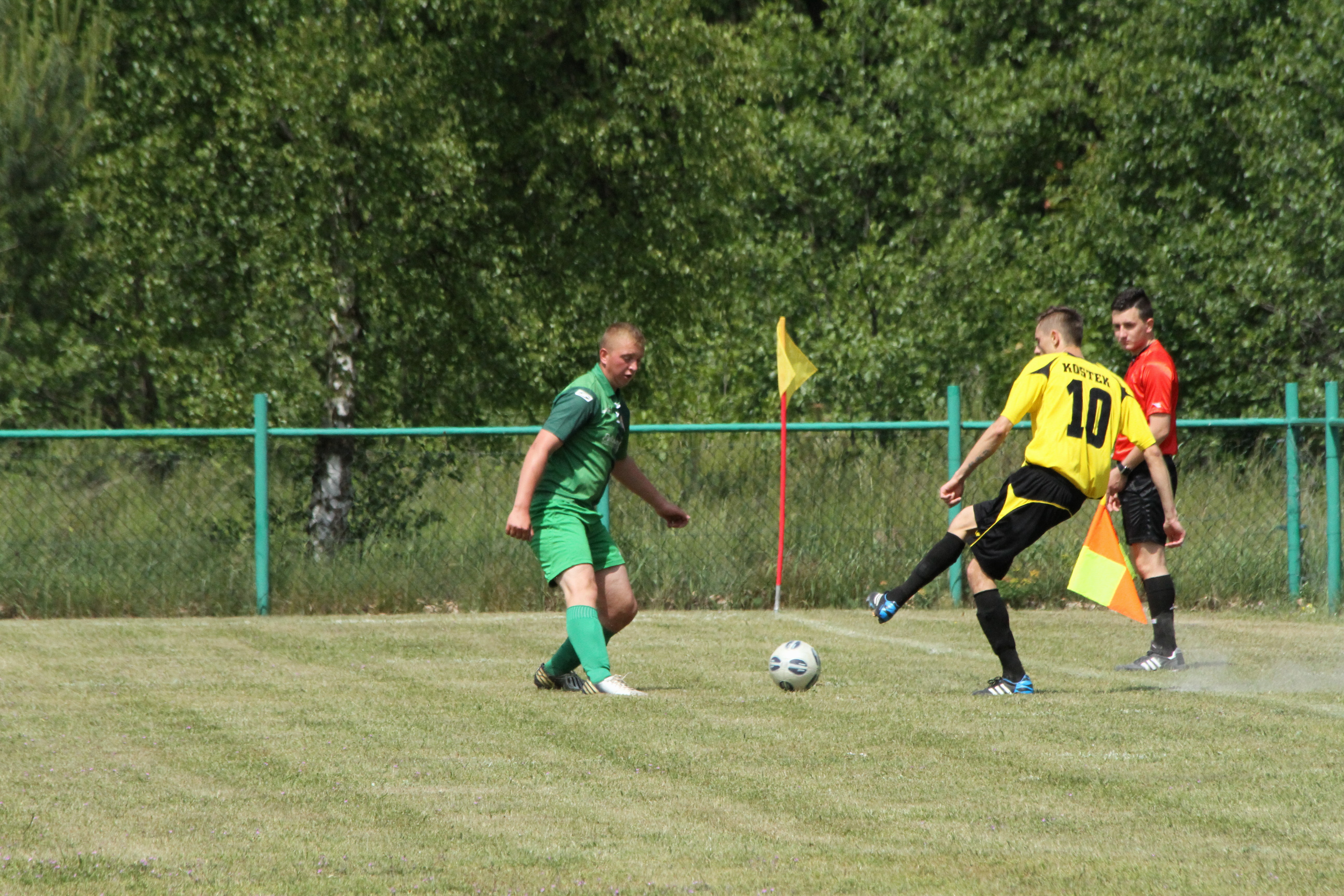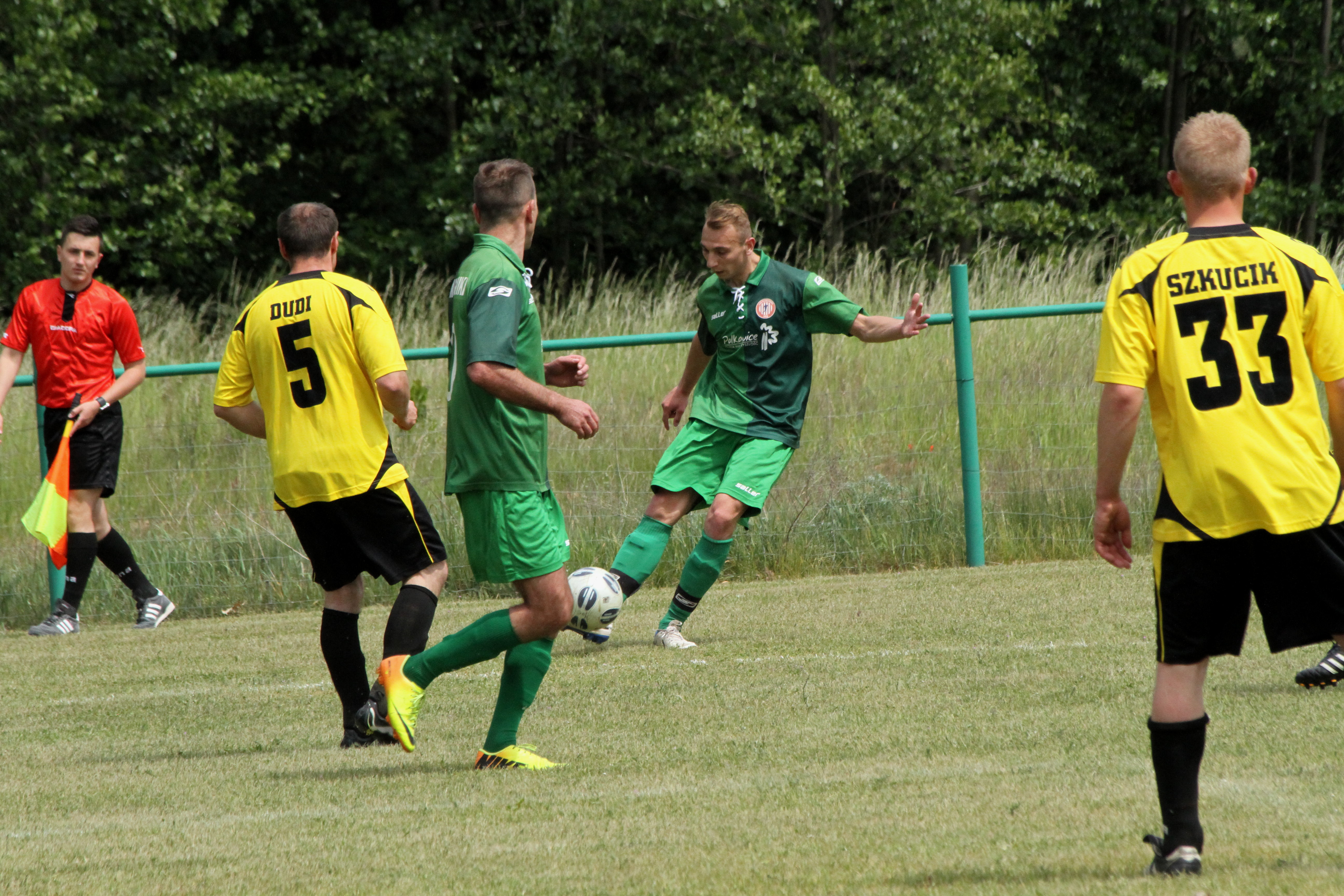 Po upływie kwadransa gry dość nieoczekiwanie w Komornikach „błysnęli” zawodnicy ze Studzionki, którzy jako wyszli na prowadzenie 0:1 i w kolejnych minutach starali się kontrolować spotkanie. Nie było to łatwe, bo coraz lepiej grali zawodnicy miejscowego LZS-u, którzy w boju o awans do A-klasy nie mogli pozwolić sobie na stratę punktów z niżej notowanym rywalem. Gospodarzom jeszcze w pierwszej połowie udało się nie tylko wyrównać, lecz także zejść na przerwę prowadząc 2:1.