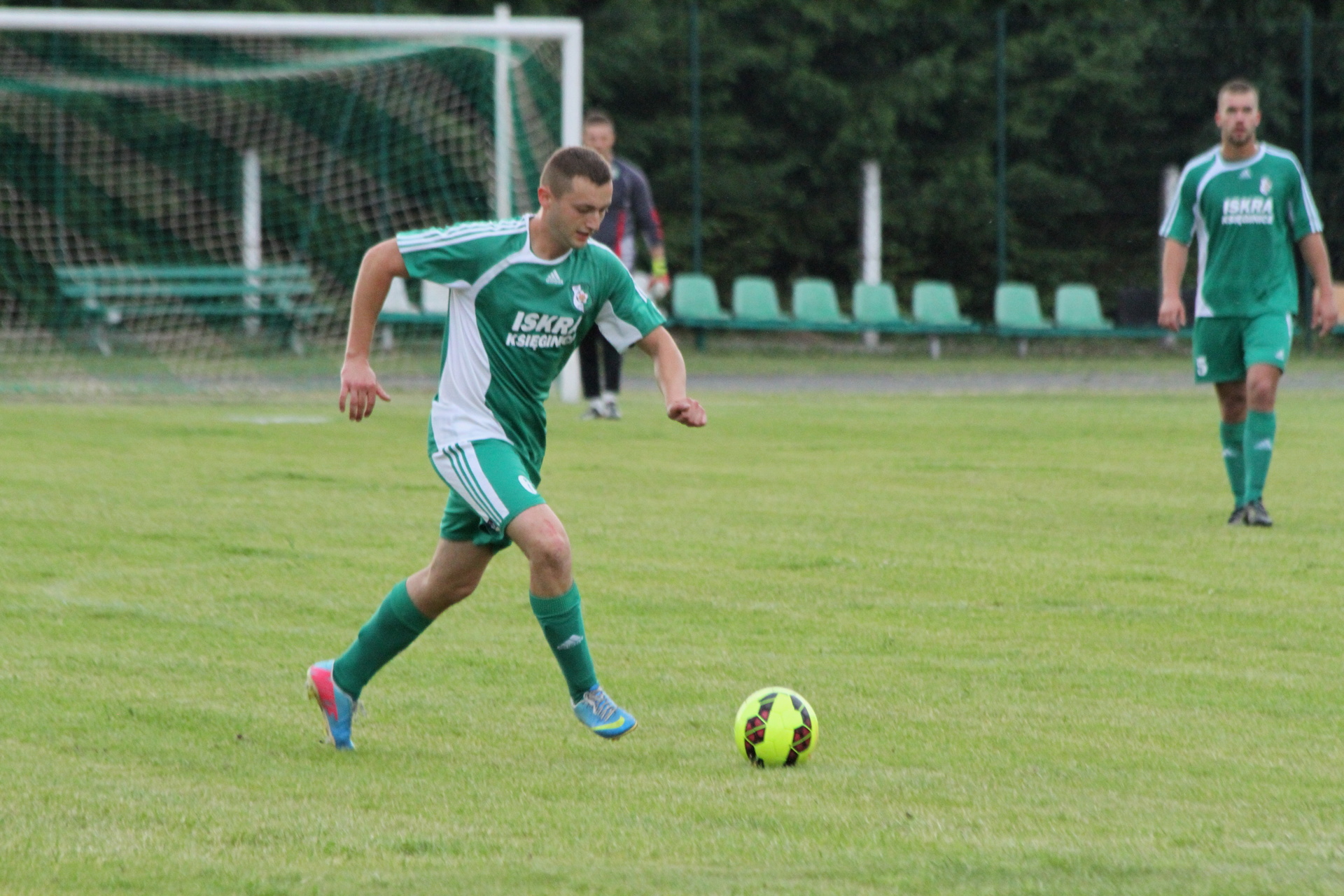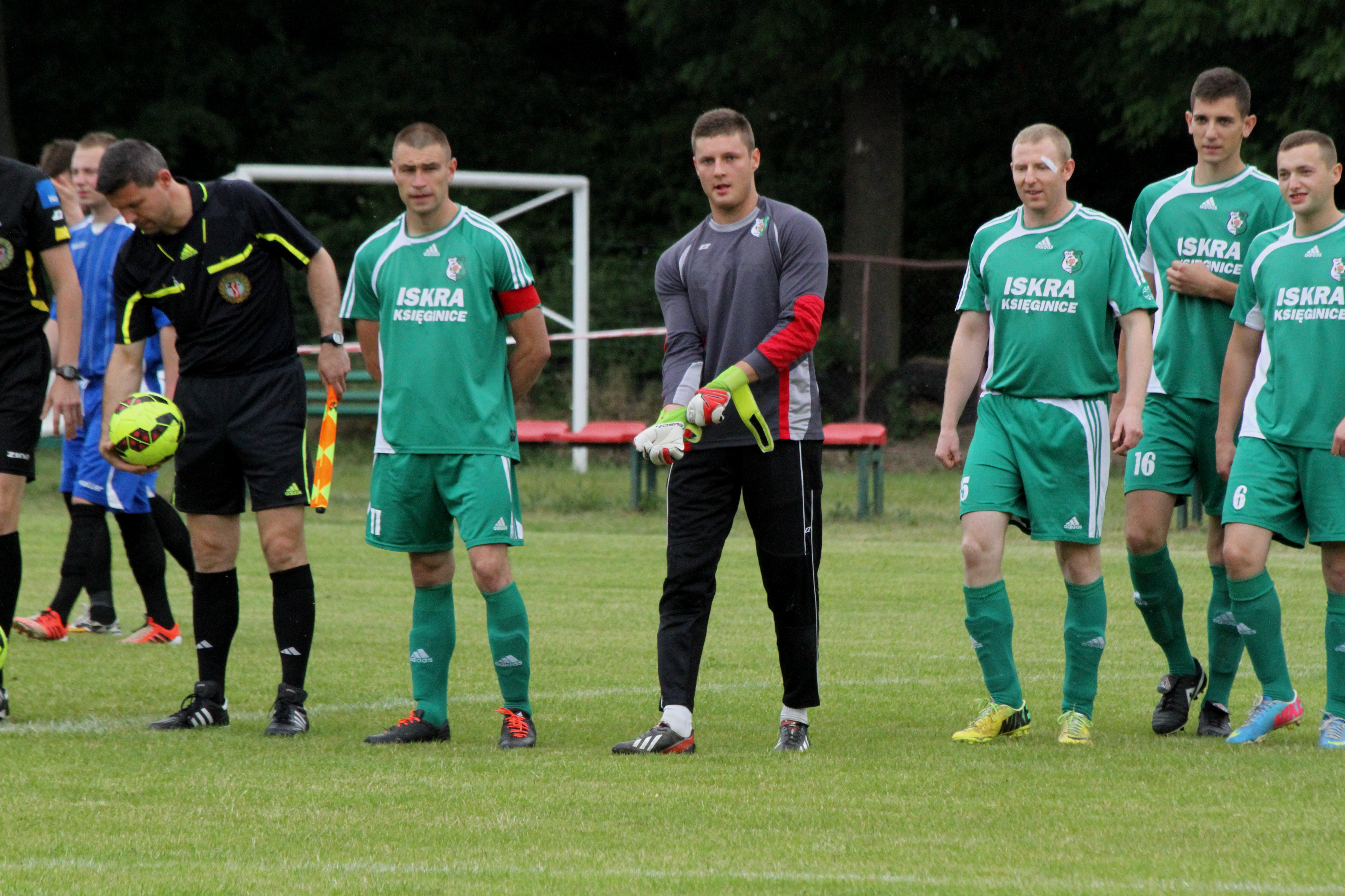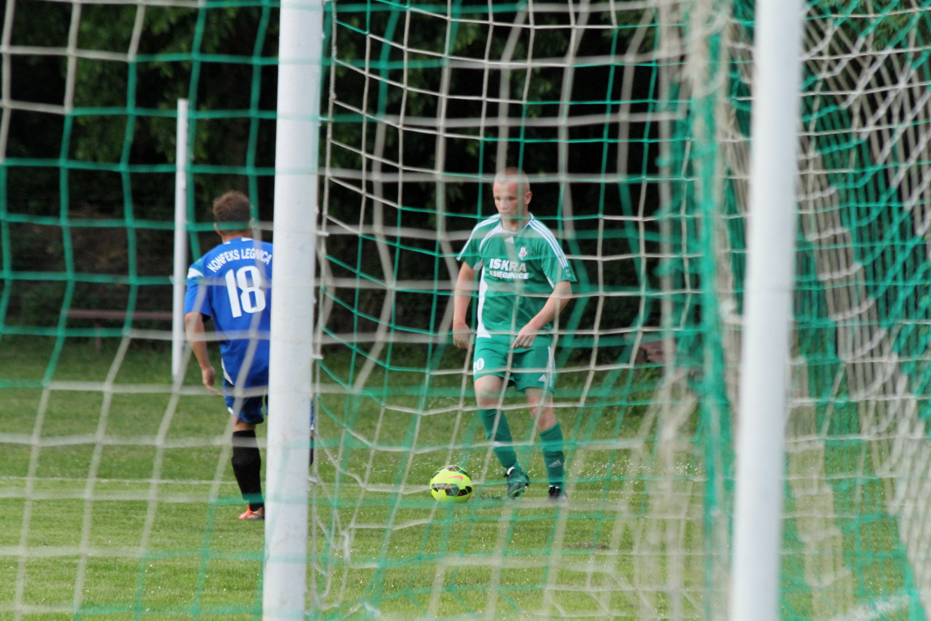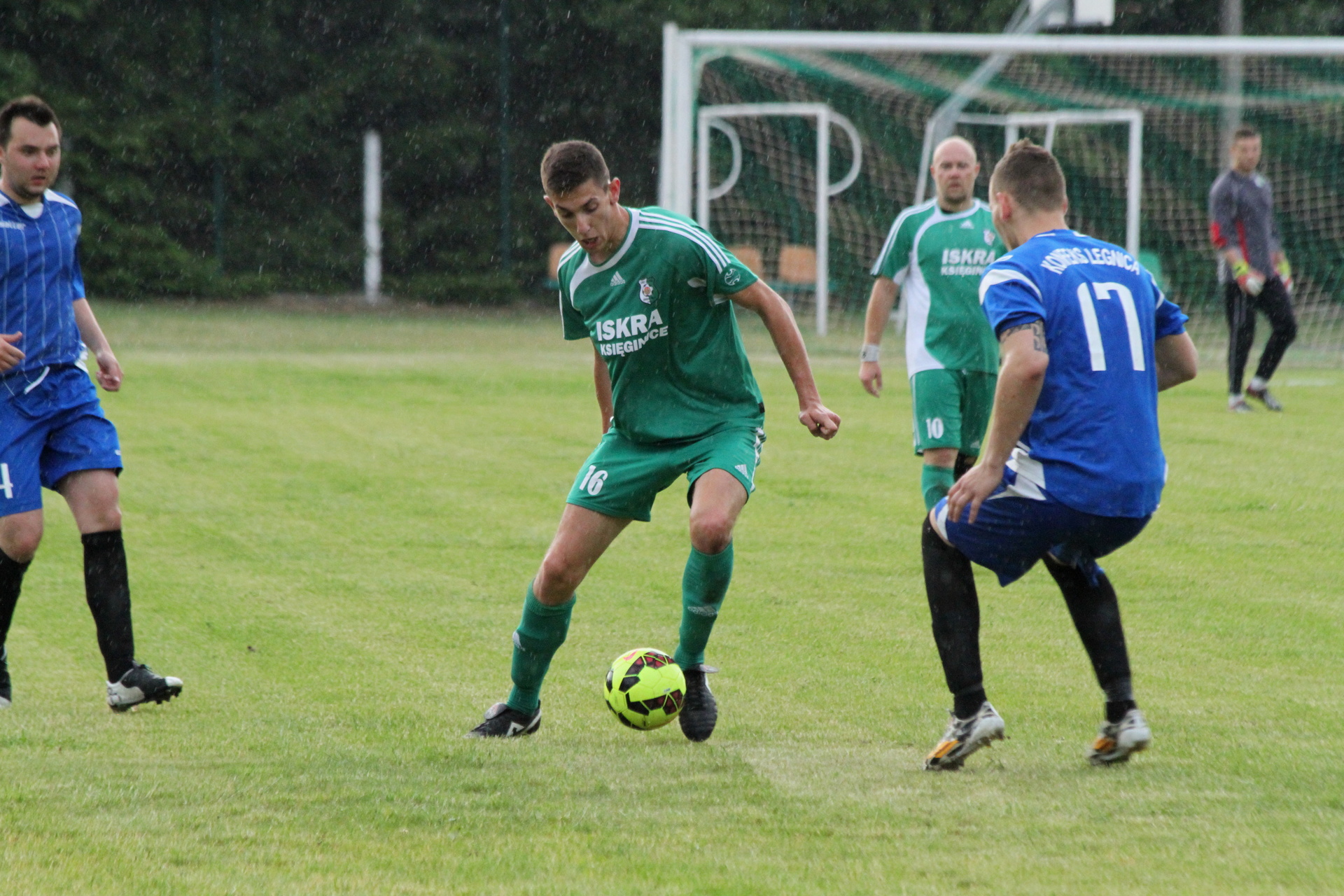 Iskra Księginice do spotkania podeszła niesłychanie zmotywowana, ponieważ wciąż nie była pewna ligowego bytu. Tylko zwycięstwo pozwalało odskoczyć od strefy spadkowej jedynemu zespołowi z Gminy Lubin na tym szczeblu rozgrywek. Już w dziewiątej minucie wyprowadzając piłkę w kierunku bramki rywali pognał Damian Migacz, który umieścił futbolówkę w bramce rywala i Iskra wyszła na prowadzenie 1:0. Kibice zgromadzeni na boisku w Księginicach na drugą bramkę czekali do końcówki pierwszej połowy, gdy Łodej został sfaulowany w polu karnym rywali a sędzia nie zawahał się podyktować jedenastki, którą wykorzystał sam poszkodowany i do przerwy mieliśmy 2:0. Po przerwie obraz gry się nie zmienił i Iskra kontrolowała losy meczu, a przysłowiowy gwóźdź do trumny legniczanom wbił Maciej Srebniak, który ustalił wynik spotkania na 3:0. Wynik ten mógłbyć jeszcze bardziej okazalszy jednak stuprocentowej sytuacji nie wykorzystał Marcin Rzeczkowski.