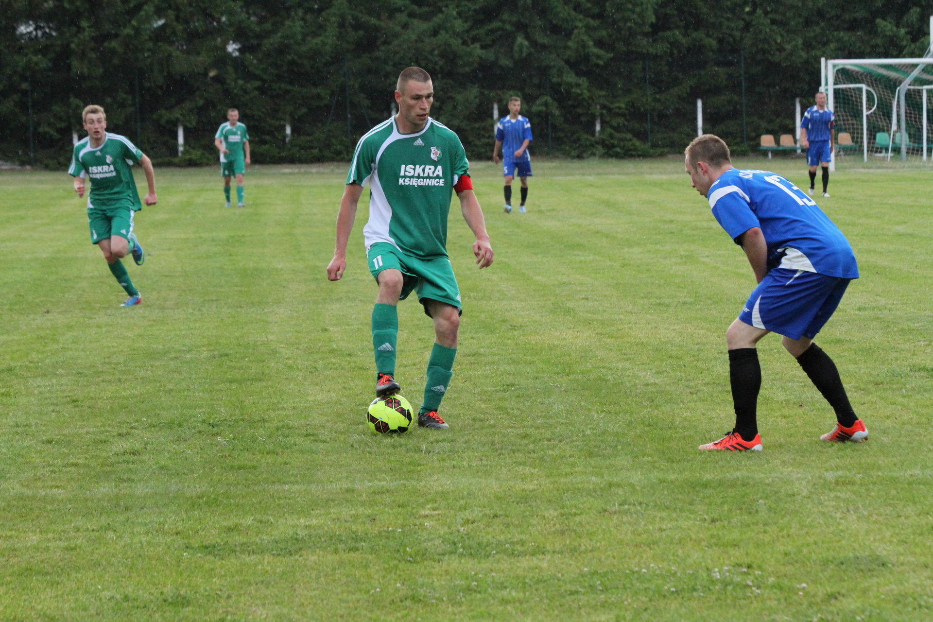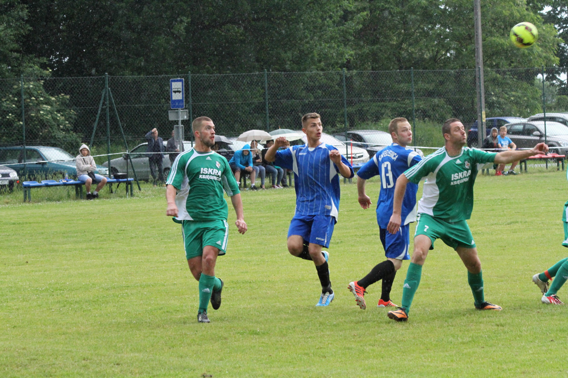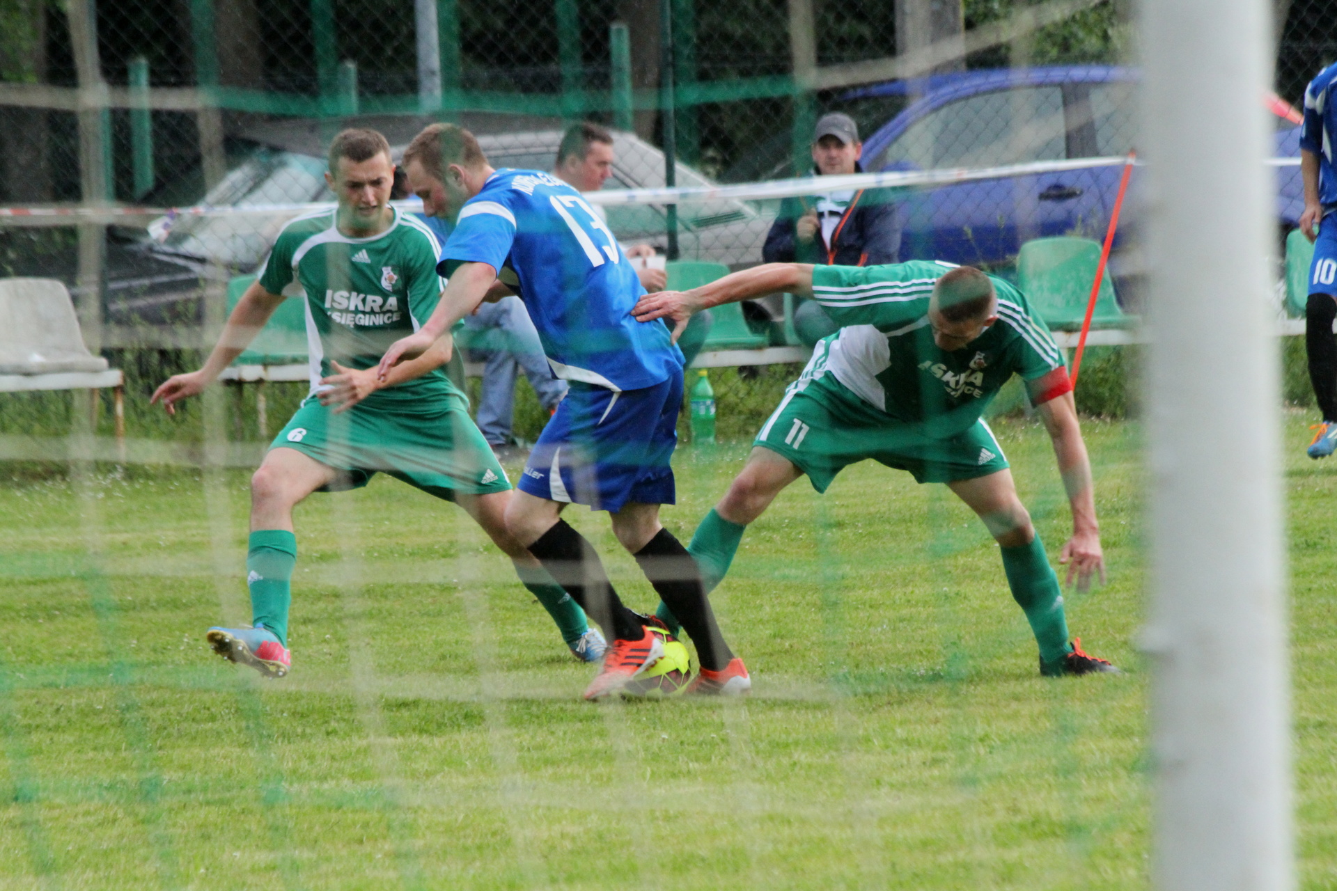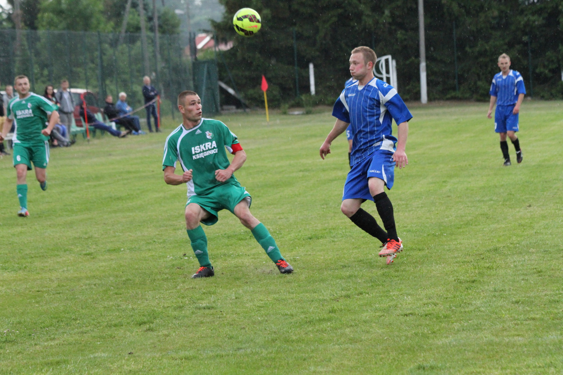 Iskra Księginice do spotkania podeszła niesłychanie zmotywowana, ponieważ wciąż nie była pewna ligowego bytu. Tylko zwycięstwo pozwalało odskoczyć od strefy spadkowej jedynemu zespołowi z Gminy Lubin na tym szczeblu rozgrywek. Już w dziewiątej minucie wyprowadzając piłkę w kierunku bramki rywali pognał Damian Migacz, który umieścił futbolówkę w bramce rywala i Iskra wyszła na prowadzenie 1:0. Kibice zgromadzeni na boisku w Księginicach na drugą bramkę czekali do końcówki pierwszej połowy, gdy Łodej został sfaulowany w polu karnym rywali a sędzia nie zawahał się podyktować jedenastki, którą wykorzystał sam poszkodowany i do przerwy mieliśmy 2:0. Po przerwie obraz gry się nie zmienił i Iskra kontrolowała losy meczu, a przysłowiowy gwóźdź do trumny legniczanom wbił Maciej Srebniak, który ustalił wynik spotkania na 3:0. Wynik ten mógłbyć jeszcze bardziej okazalszy jednak stuprocentowej sytuacji nie wykorzystał Marcin Rzeczkowski.