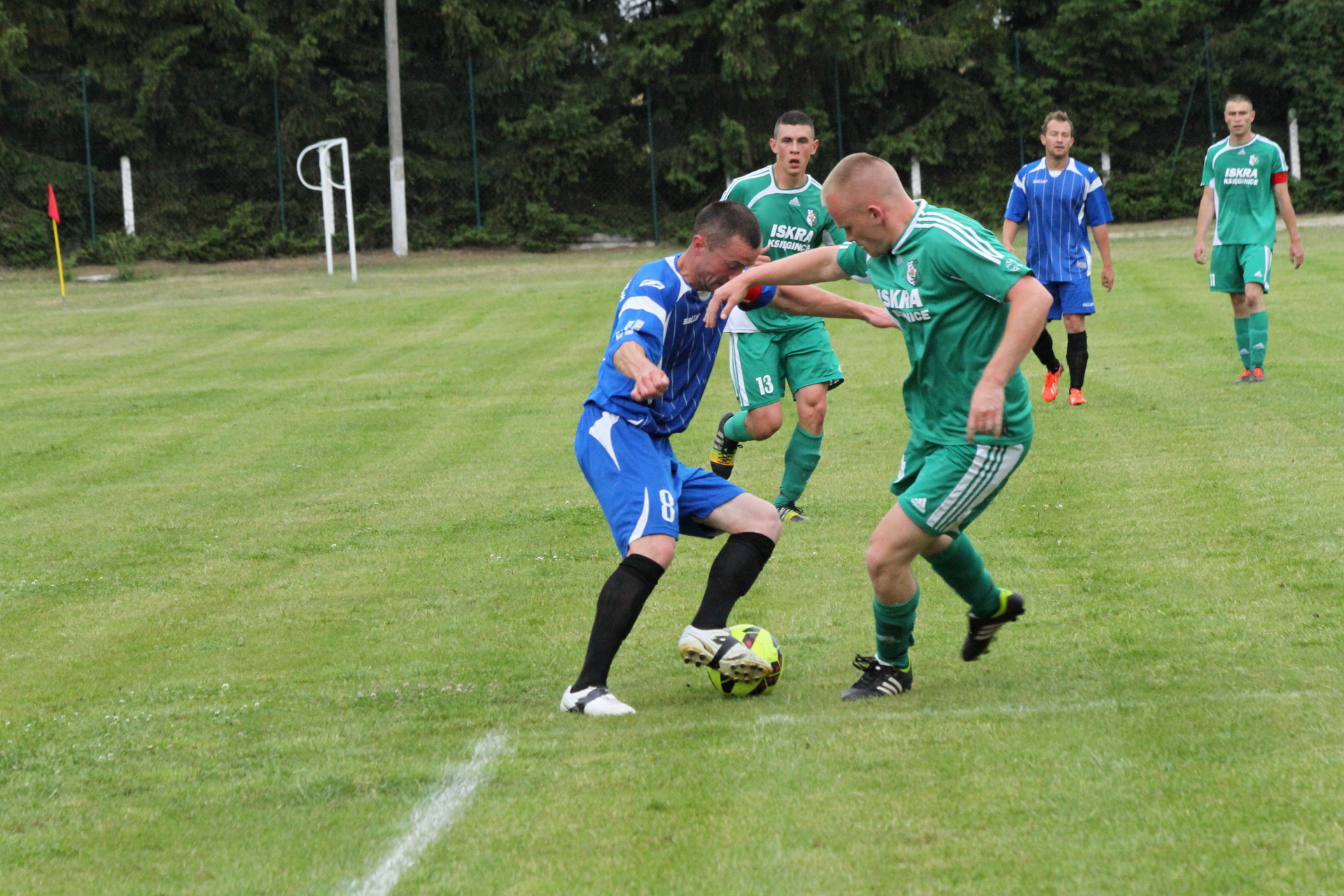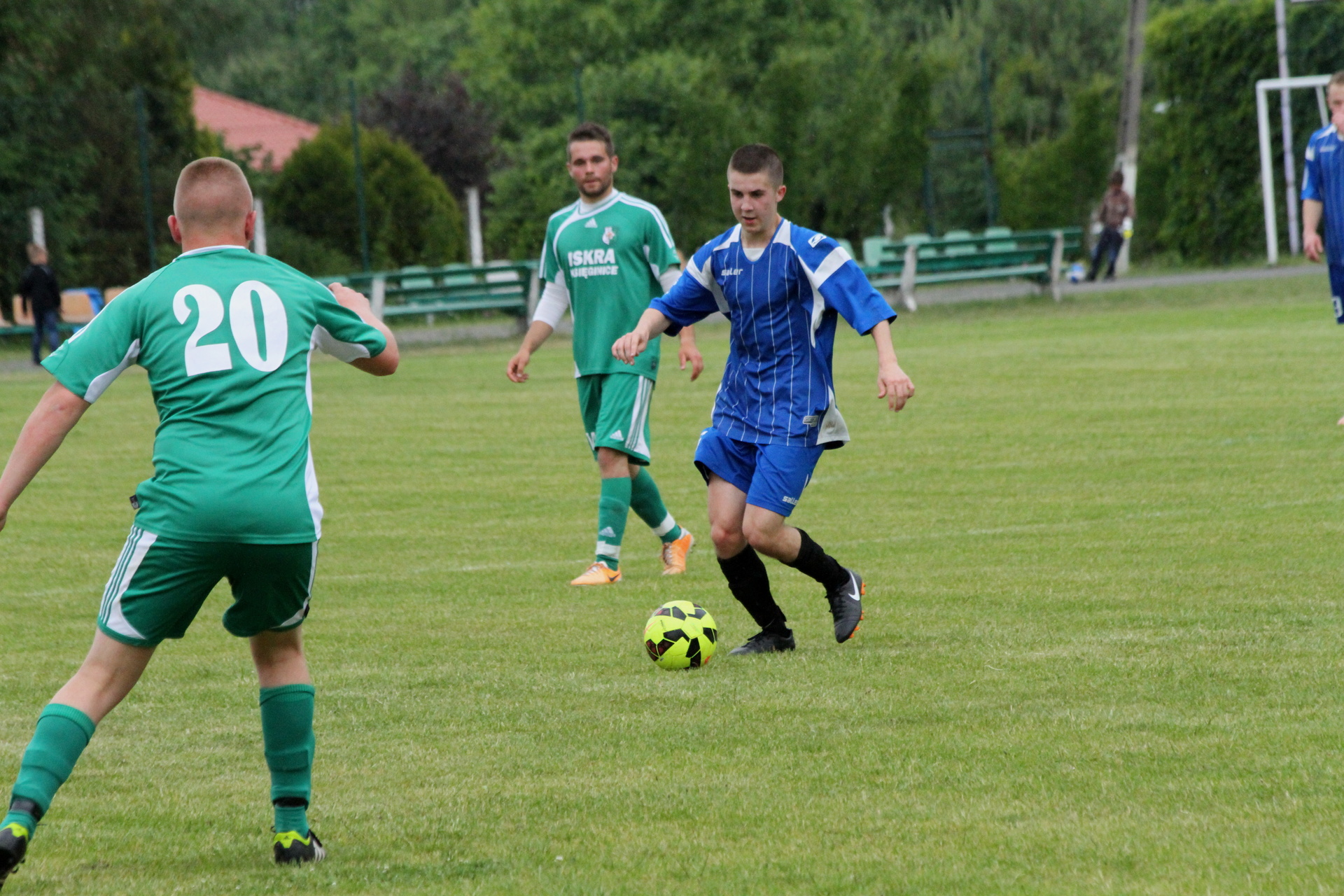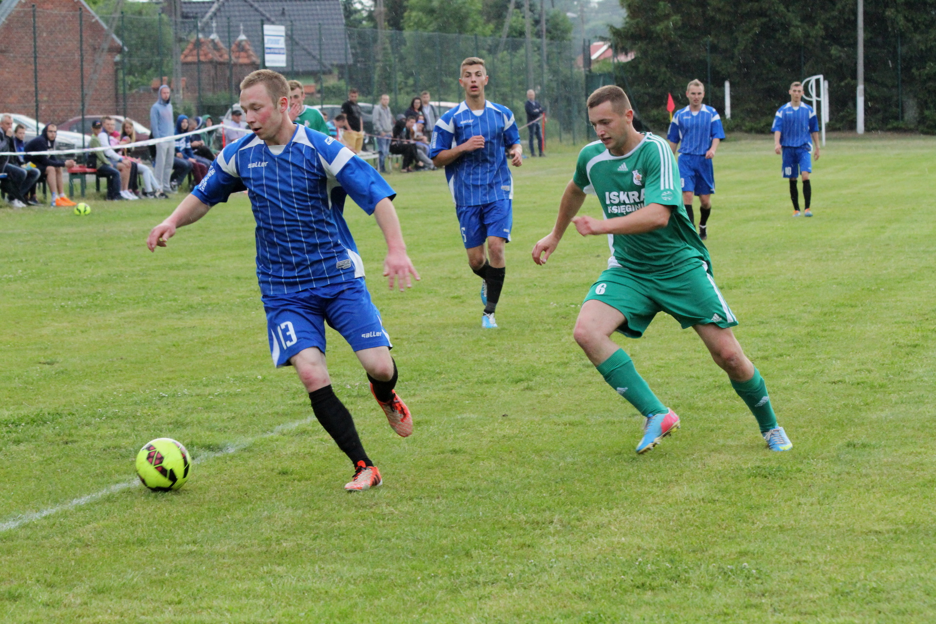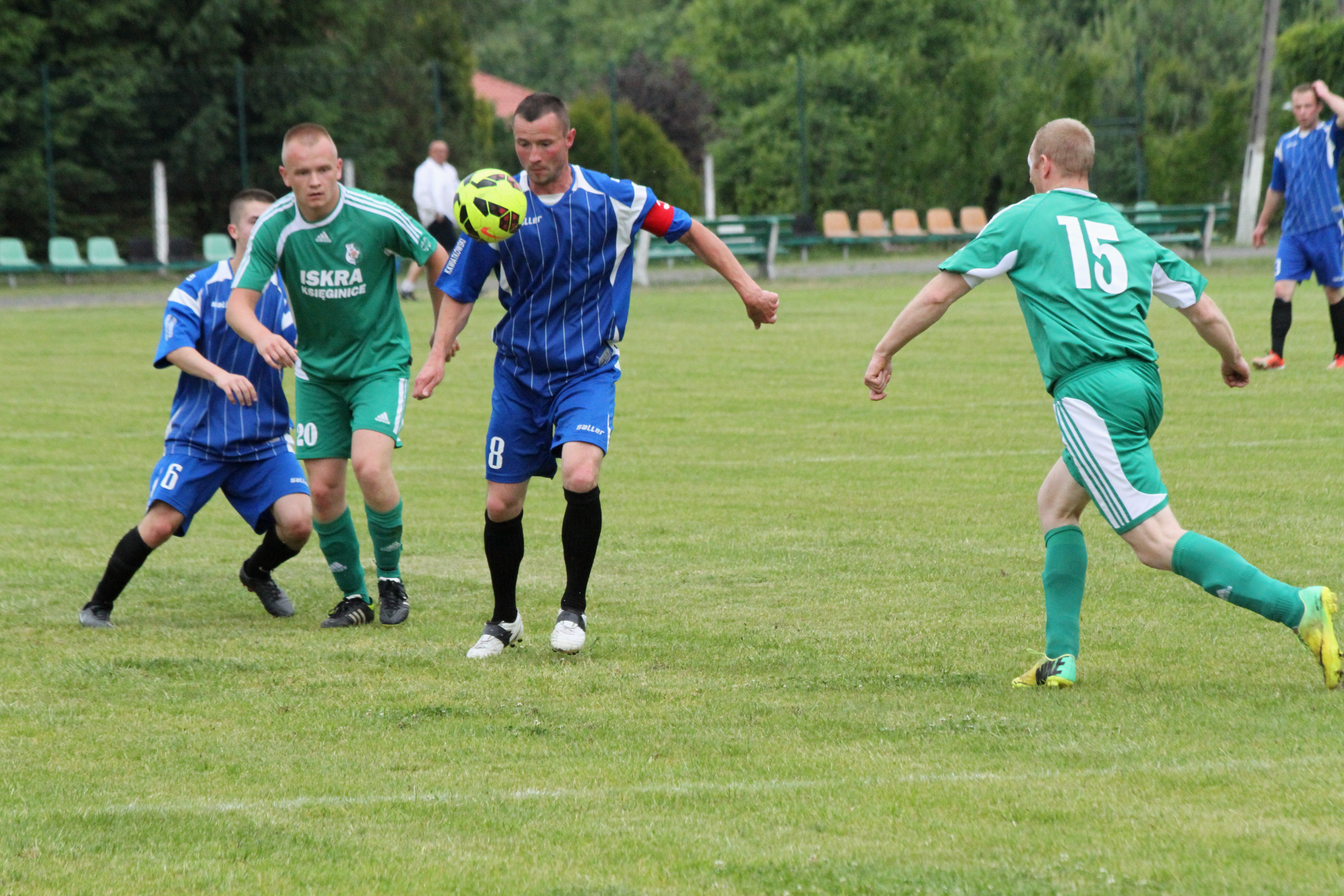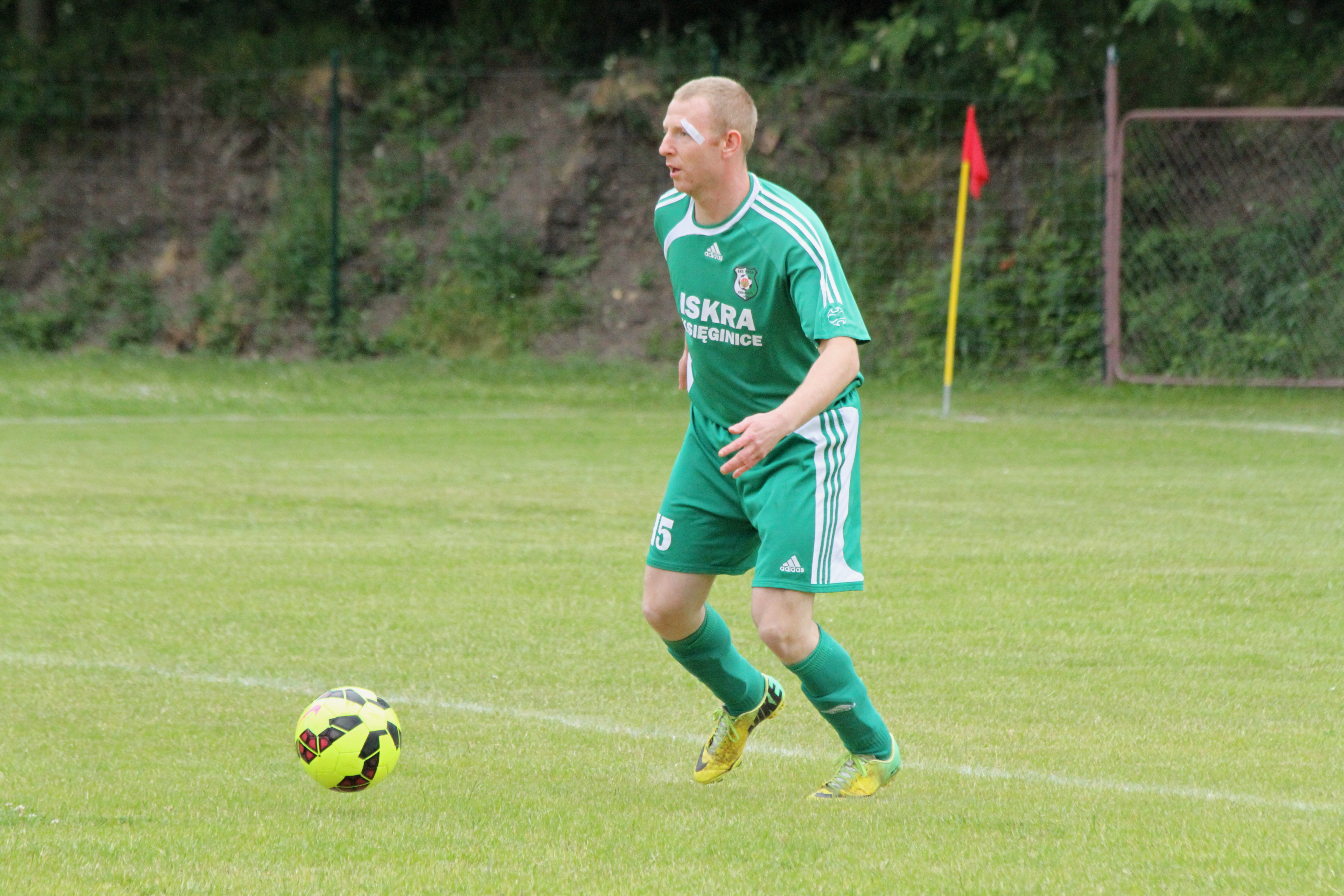 Iskra Księginice do spotkania podeszła niesłychanie zmotywowana, ponieważ wciąż nie była pewna ligowego bytu. Tylko zwycięstwo pozwalało odskoczyć od strefy spadkowej jedynemu zespołowi z Gminy Lubin na tym szczeblu rozgrywek. Już w dziewiątej minucie wyprowadzając piłkę w kierunku bramki rywali pognał Damian Migacz, który umieścił futbolówkę w bramce rywala i Iskra wyszła na prowadzenie 1:0. Kibice zgromadzeni na boisku w Księginicach na drugą bramkę czekali do końcówki pierwszej połowy, gdy Łodej został sfaulowany w polu karnym rywali a sędzia nie zawahał się podyktować jedenastki, którą wykorzystał sam poszkodowany i do przerwy mieliśmy 2:0. Po przerwie obraz gry się nie zmienił i Iskra kontrolowała losy meczu, a przysłowiowy gwóźdź do trumny legniczanom wbił Maciej Srebniak, który ustalił wynik spotkania na 3:0. Wynik ten mógłbyć jeszcze bardziej okazalszy jednak stuprocentowej sytuacji nie wykorzystał Marcin Rzeczkowski.