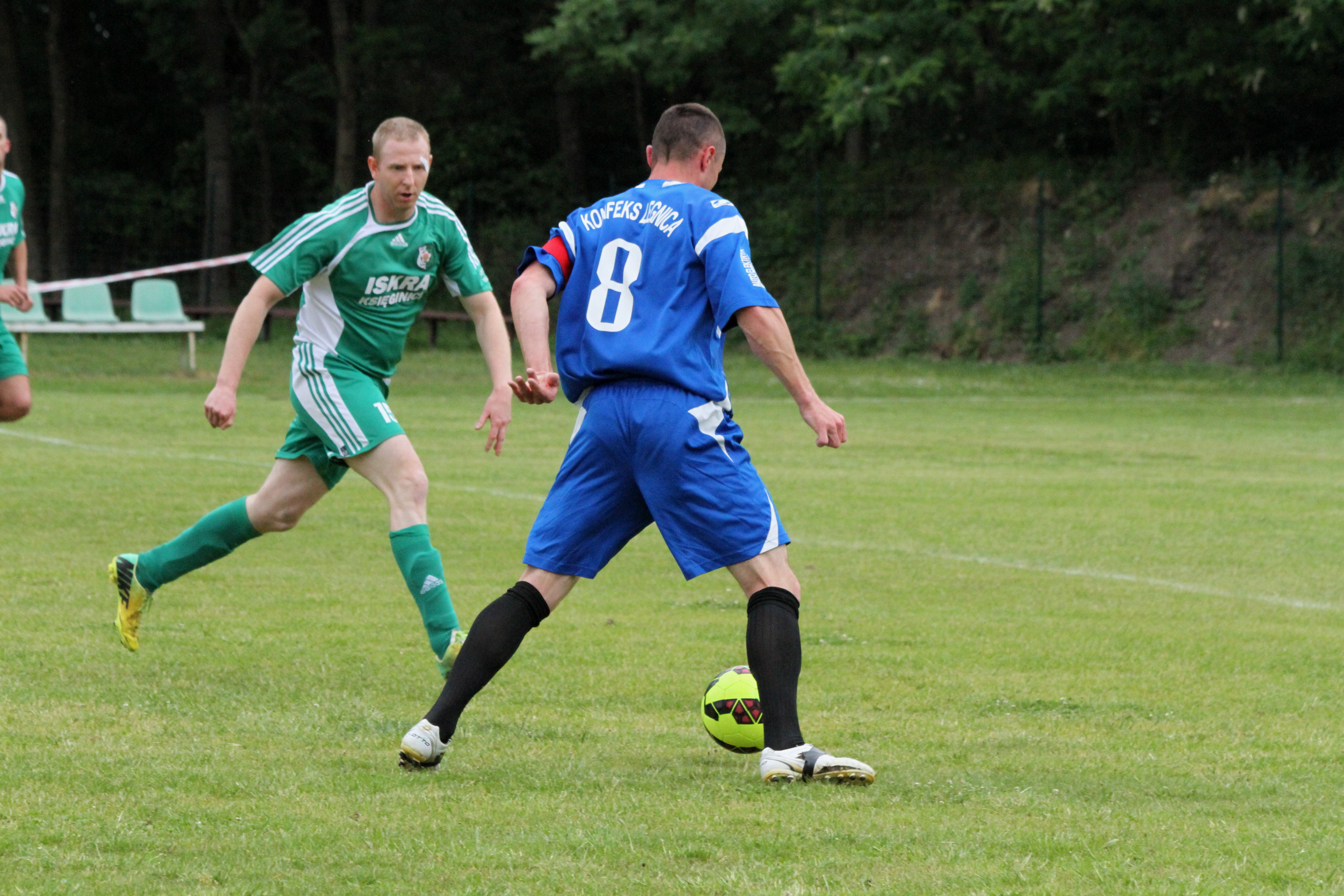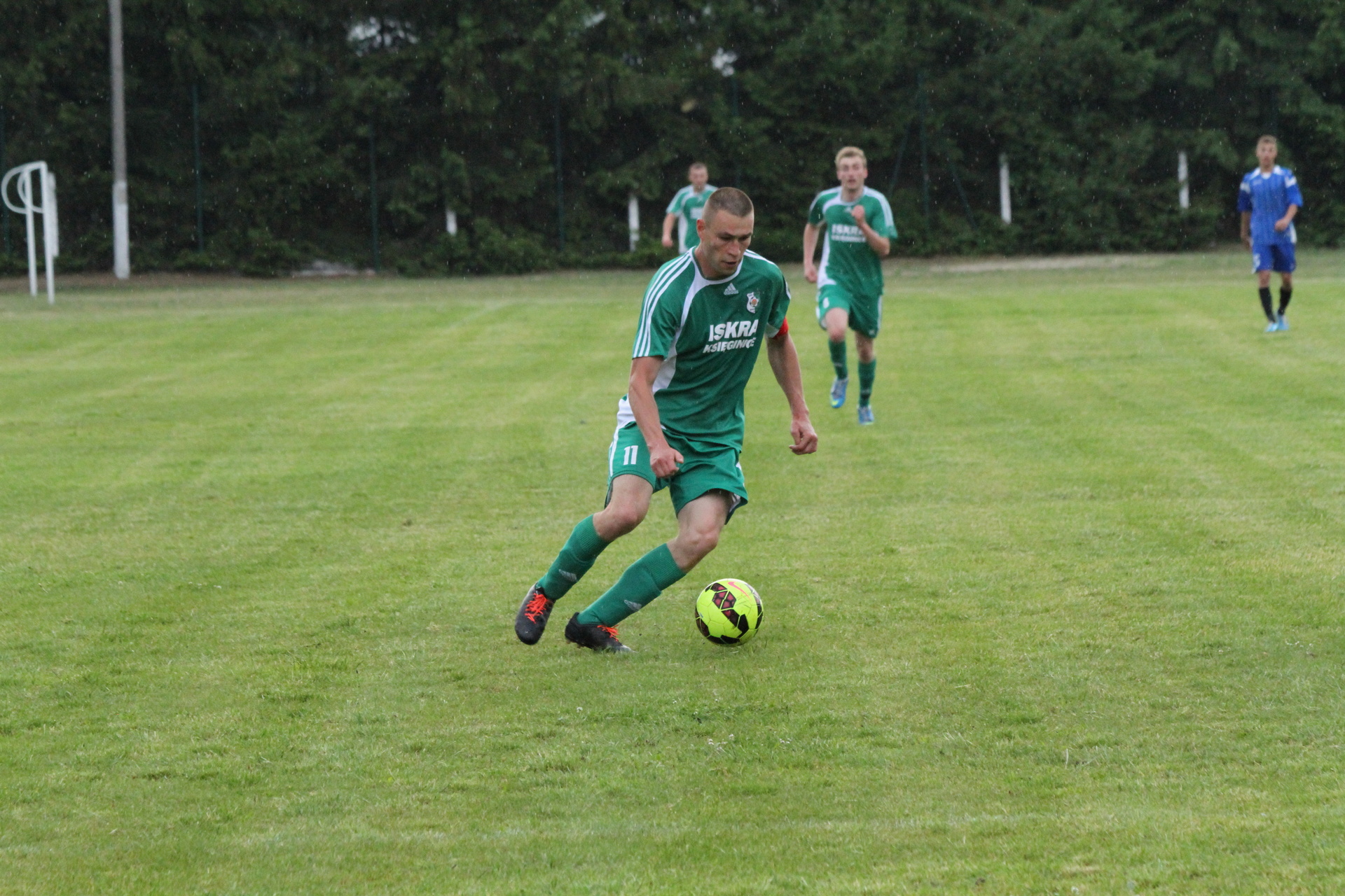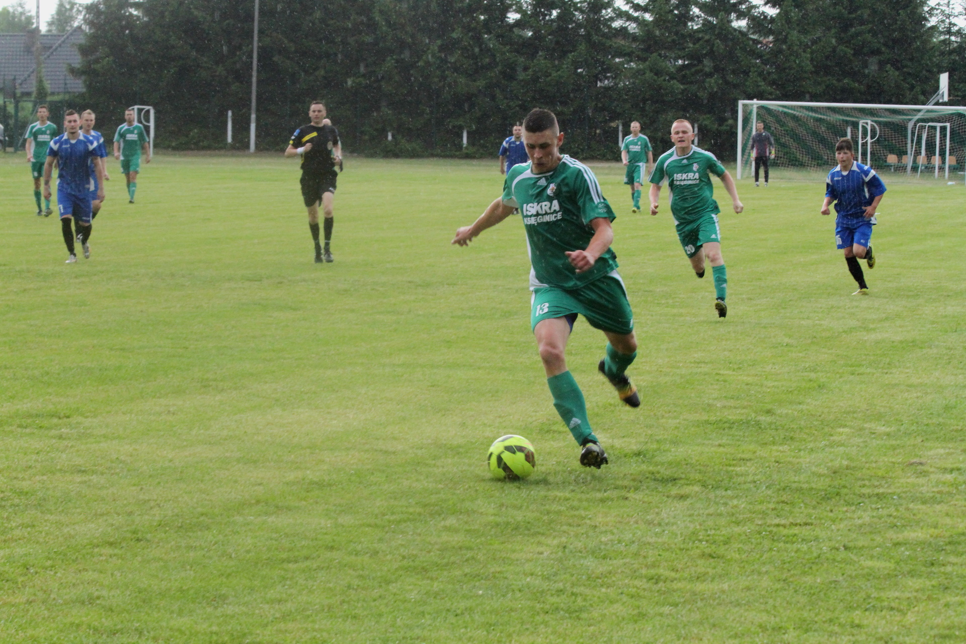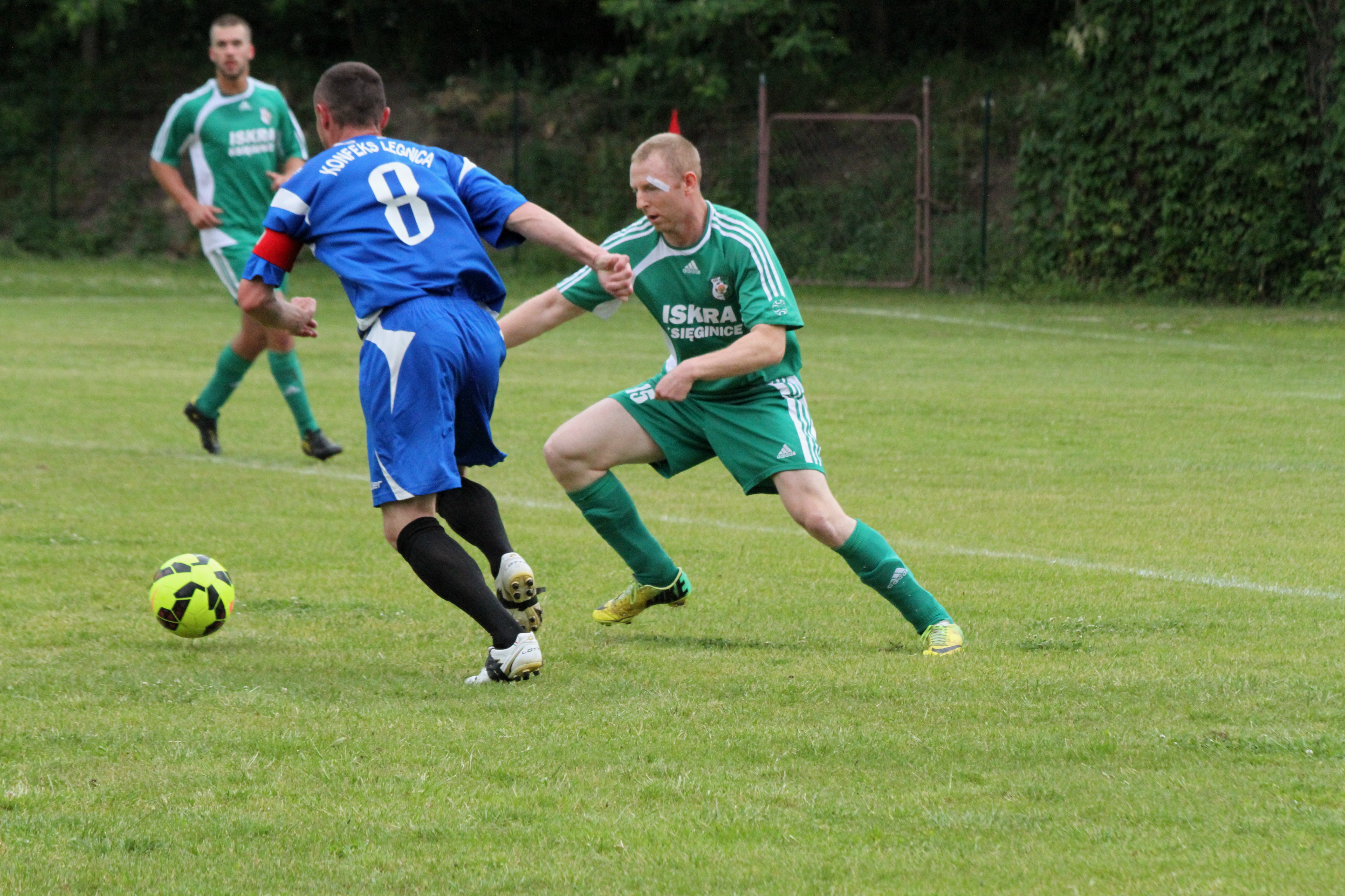 Iskra Księginice do spotkania podeszła niesłychanie zmotywowana, ponieważ wciąż nie była pewna ligowego bytu. Tylko zwycięstwo pozwalało odskoczyć od strefy spadkowej jedynemu zespołowi z Gminy Lubin na tym szczeblu rozgrywek. Już w dziewiątej minucie wyprowadzając piłkę w kierunku bramki rywali pognał Damian Migacz, który umieścił futbolówkę w bramce rywala i Iskra wyszła na prowadzenie 1:0. Kibice zgromadzeni na boisku w Księginicach na drugą bramkę czekali do końcówki pierwszej połowy, gdy Łodej został sfaulowany w polu karnym rywali a sędzia nie zawahał się podyktować jedenastki, którą wykorzystał sam poszkodowany i do przerwy mieliśmy 2:0. Po przerwie obraz gry się nie zmienił i Iskra kontrolowała losy meczu, a przysłowiowy gwóźdź do trumny legniczanom wbił Maciej Srebniak, który ustalił wynik spotkania na 3:0. Wynik ten mógłbyć jeszcze bardziej okazalszy jednak stuprocentowej sytuacji nie wykorzystał Marcin Rzeczkowski.