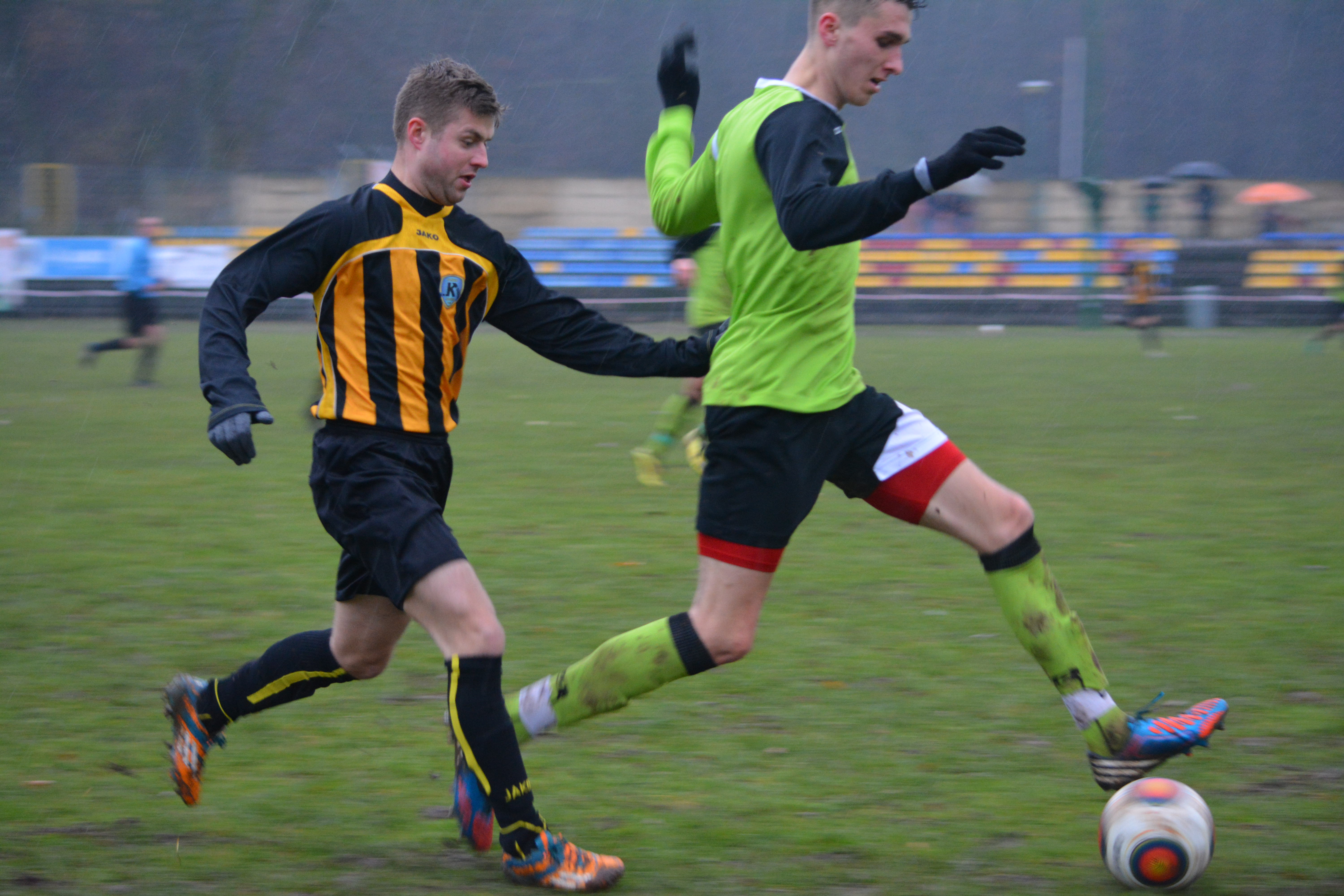 Spotkanie rozgrywano w bardzo trudnych warunkach atmosferycznych. Oba zespoły rywalizowały na bardzo grząskim boisku, a przez większość meczu padał rzęsisty deszcz, co nie sprzyjało stworzeniu efektownego widowiska. W ostatnich kilku minutach było już tak ciemno, że obie jedenastki kończyły zawody przy sztucznym świetle. Kuźnia była drużyną lepszą w przekroju całych 90 minut. Od początku przewyższała kulturą gry i umiejętnościami przyjezdnych, którzy tanio skóry nie sprzedali, grając z dużym zaangażowaniem i ambicją.
