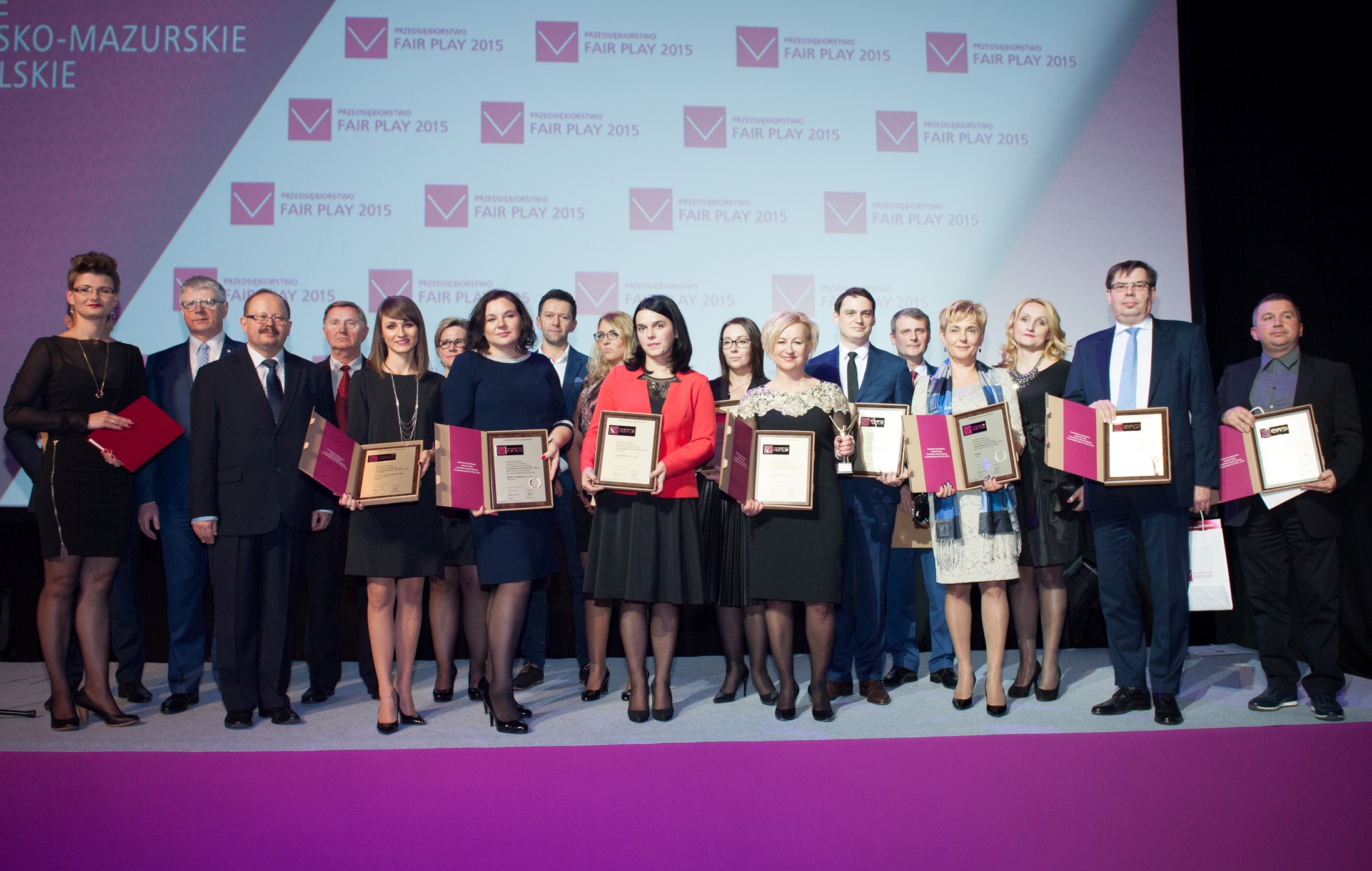 Nagrodę główną – Statuetkę Przedsiębiorstwo Fair Play 2015 przyznano 15 firmom, w tym: KGHM Metraco z Legnicy, które może się też poszczycić Brązowym Laurem. Platynowy Laur przypadł Biureksowi z Lubina oraz Legnickiemu Przedsiębiorstwu Gospodarki Komunalnej. Julian Ziarno, prezes zarządu Lena Wilków, otrzymał Tytuł Ambasadora Fair Play w Biznesie. Ze Złotej Statuetki może się cieszyć legnicki WPEC. Certyfikaty otrzymały: głogowska ARRA, legnickie Centrum Odszkodowań DRB i Compass Money, lubińskie MPWiK oraz Energetyka, a także podzłotoryjska Lena Wilków.