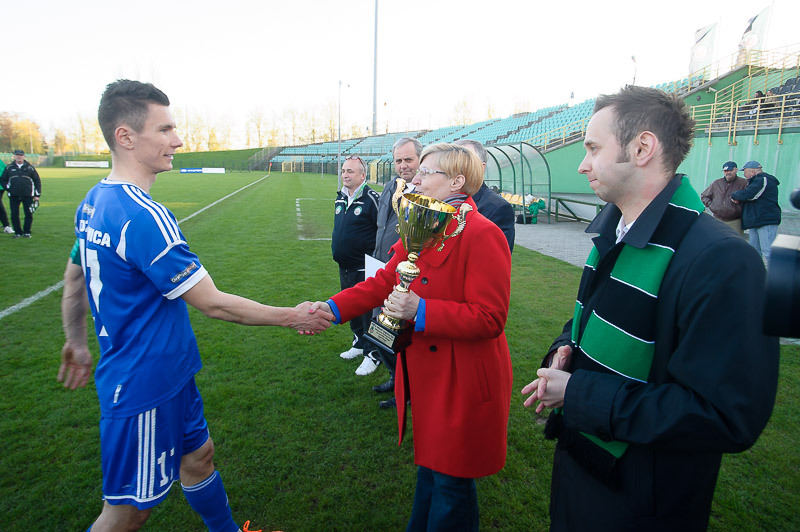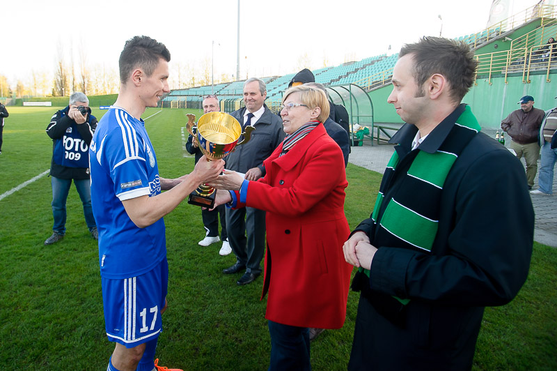 W środowe popołudnie na stadionie w Polkowicach spotkały się dwa równe zespoły. Pokazał to sobotni mecz ligowy, a potwierdził finał Okręgowego Pucharu Polski. Rezerwy legnickiej Miedzi przyjechały do Polkowic wzmocnione wracającym do gry po kontuzji Trifonovem i golkiperem Smugiem z pierwszej drużyny. Polkowicki zespół natomiast zagrał osłabiony brakiem kontuzjowanego bramkarza Damiana Primela odczuwającego skutki „szpagatowej” interwencji w meczu ligowym oraz chorego Macieja Bancewicza. Mecz od samego początku był bardzo wyrównany, a minimalną przewagę w pierwszej połowie mieli piłkarze KGHM ZANAM Polkowice. Podobnie było również w drugiej połowie, jednak jeden decydujący cios zadali podopieczni Piotra Jacka. W 80. minucie po rzucie wolnym piłka po drodze odbiła się od Adriana Woźniczki i wpadła do bramki strzeżonej przez Jacka Sajaka. Więcej bramek nie widzieliśmy i rezerwy Miedzi cieszyły się z wygranej.