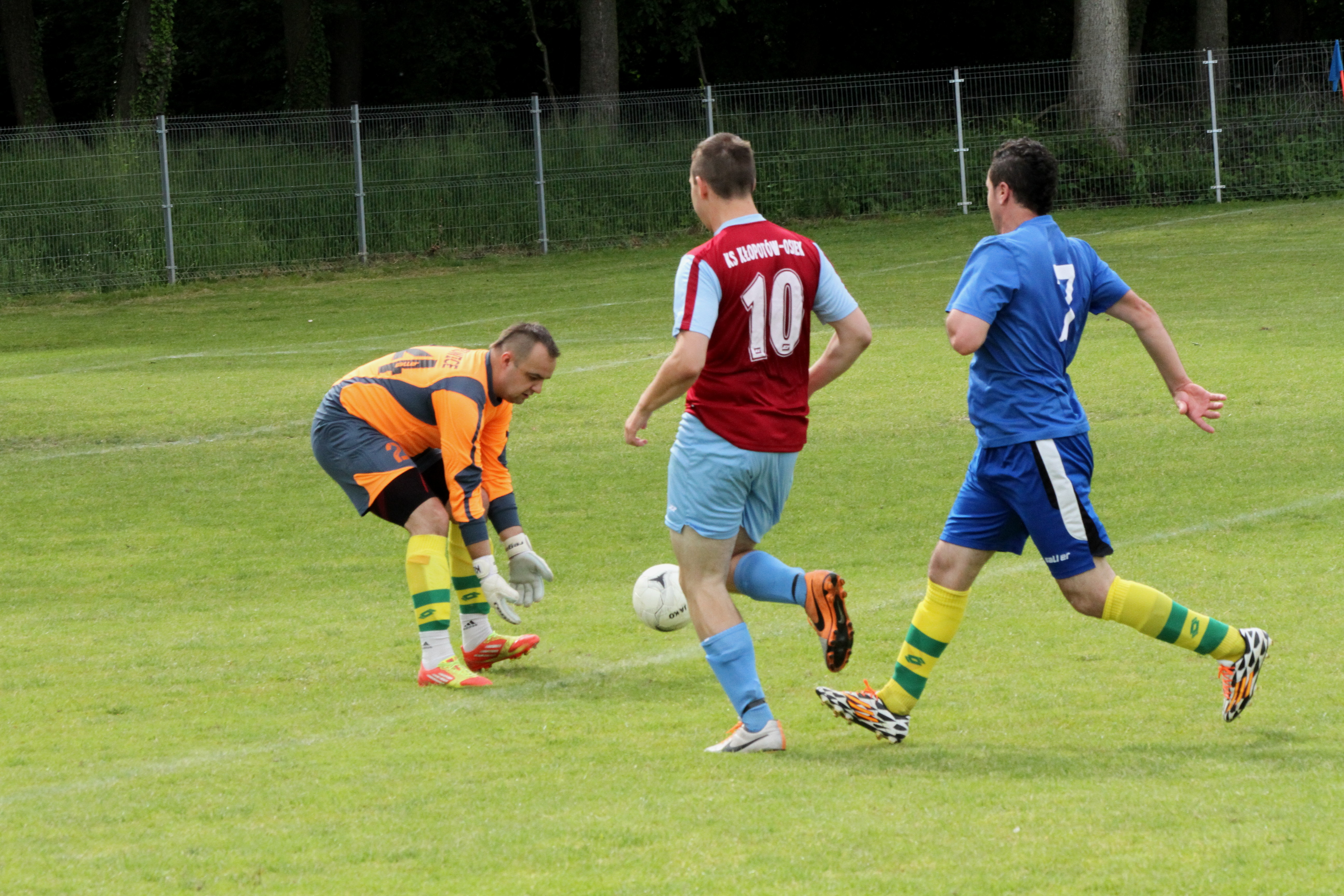 Do podlegnickich Bieniowic zawodnicy Transportowca dotarli w jedenastu, co oznaczało brak alternatywy na ławce rezerwowych. Taka sytuacja spowodowała, że zawodnicy z powiatu lubińskiego od samego początku musieli cofnąć się do obrony i czekać na kontrataki. Dwa z nich zakończyły się w pierwszej połowie bramkami, dzięki czemu podopieczni Przemysława Kotlarza na przerwę schodzili prowadząc 2:1. W przerwie do zespołu Transportowca dołączył jeden z zawodników, dzięki czemu trener zespołu mógł skorzystać chociaż z jednej zmiany. Zawodnicy reprezentujący Kłopotów i Osiek nie byli jednak w stanie wytrzymać kondycyjnie zmagania z rezerwami występującej w klasie okręgowej Kaczawy Bieniowice i ostatecznie zremisowali to spotkanie 2:2.