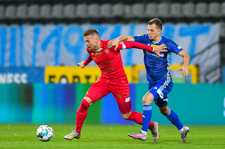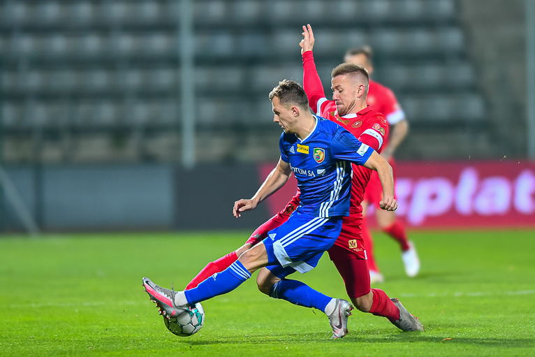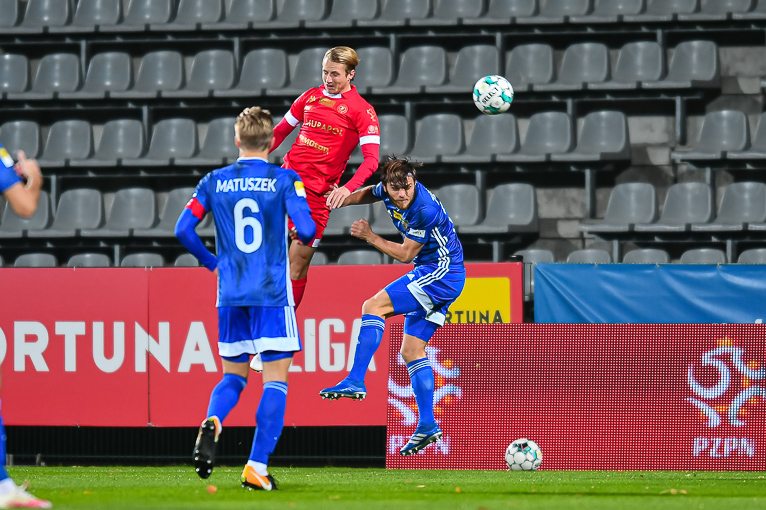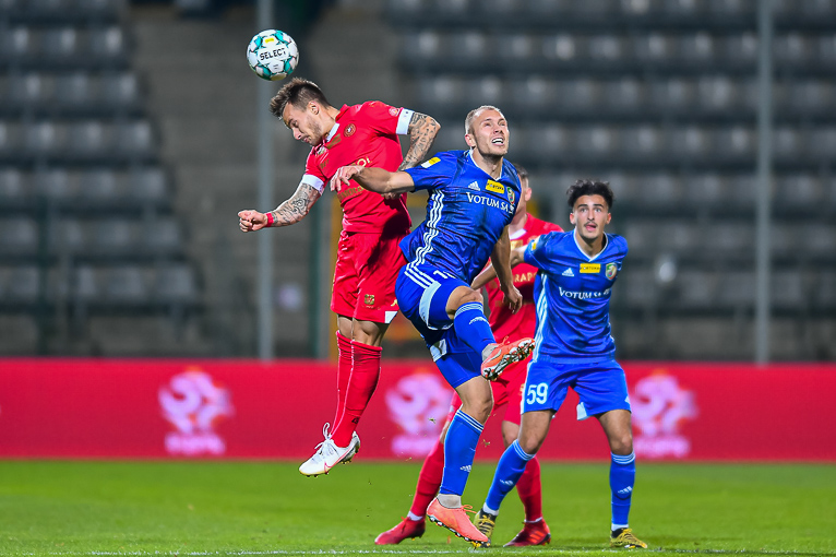Filip Becht otworzył wynik strzelając bramkę w 83. minucie. Chwilę później mogło być już 0:2, jednak Dominik Kun trafił w słupek. W doliczonym czasie gry zamieszanie w polu karnym łodzian wykorzystał Mijusković i to on uratował punkt dla Miedzi.