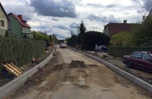 Obecnie na miejscu montowane są betonowe krawężniki wraz ze ściekami, trwa również regulacja wysokości wpustów ulicznych.