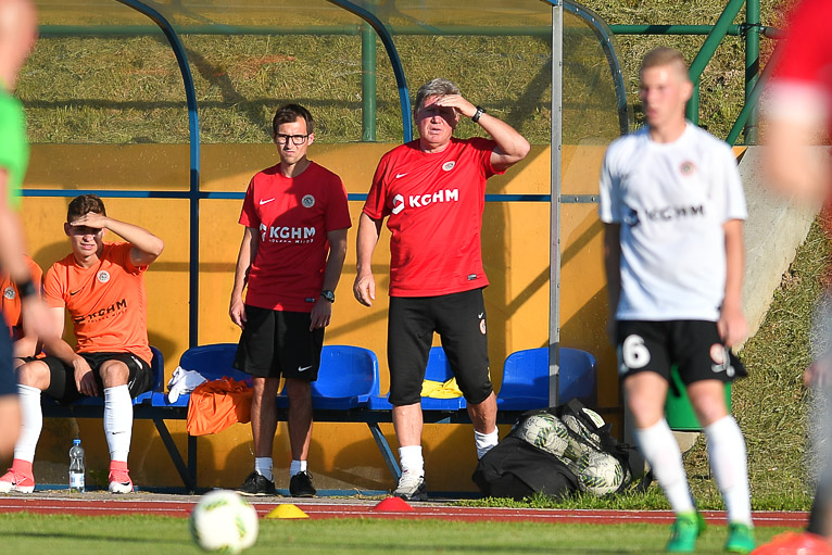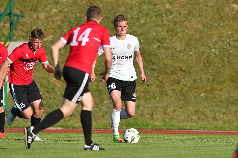 Zagłębie II: Hładun – Witsanko, Szota, Oko (75′ Ostrowski), Bieliński (89′ Nowak)- Pakulski (57′ Slisz), Szymankiewicz – Gołębiowski, Żyra, Dudziak (70′ Chodyna) – Siemaszko