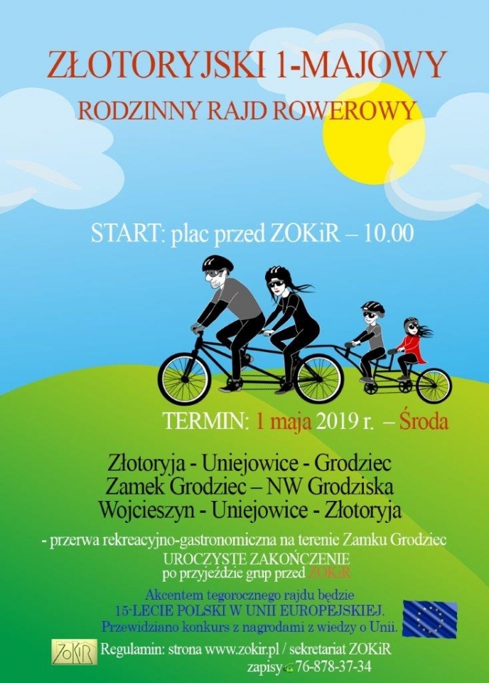 – Chodzi oczywiście stroje nawiązujące swoim wyglądem do barw lub symboli Unii Europejskiej i jej krajów członkowskich – zachęca Zbigniew Gruszczyński, dyrektor ZOKiR-u. Niespodzianki czekają też na uczestników quizu o UE, który odbędzie się w połowie rajdu, podczas krótkiego pikniku na zamku w Grodźcu.