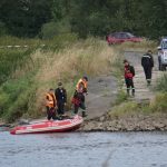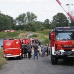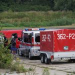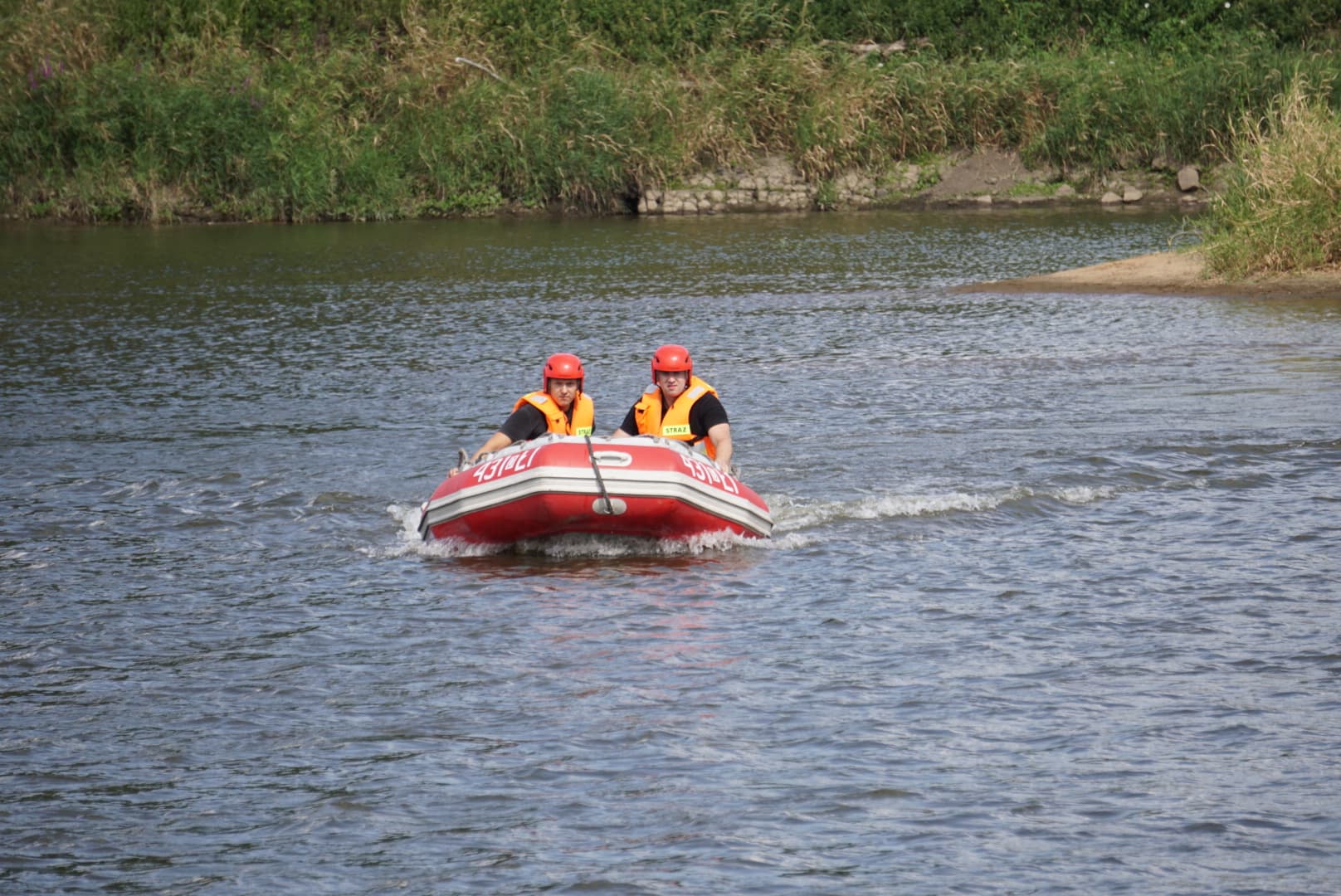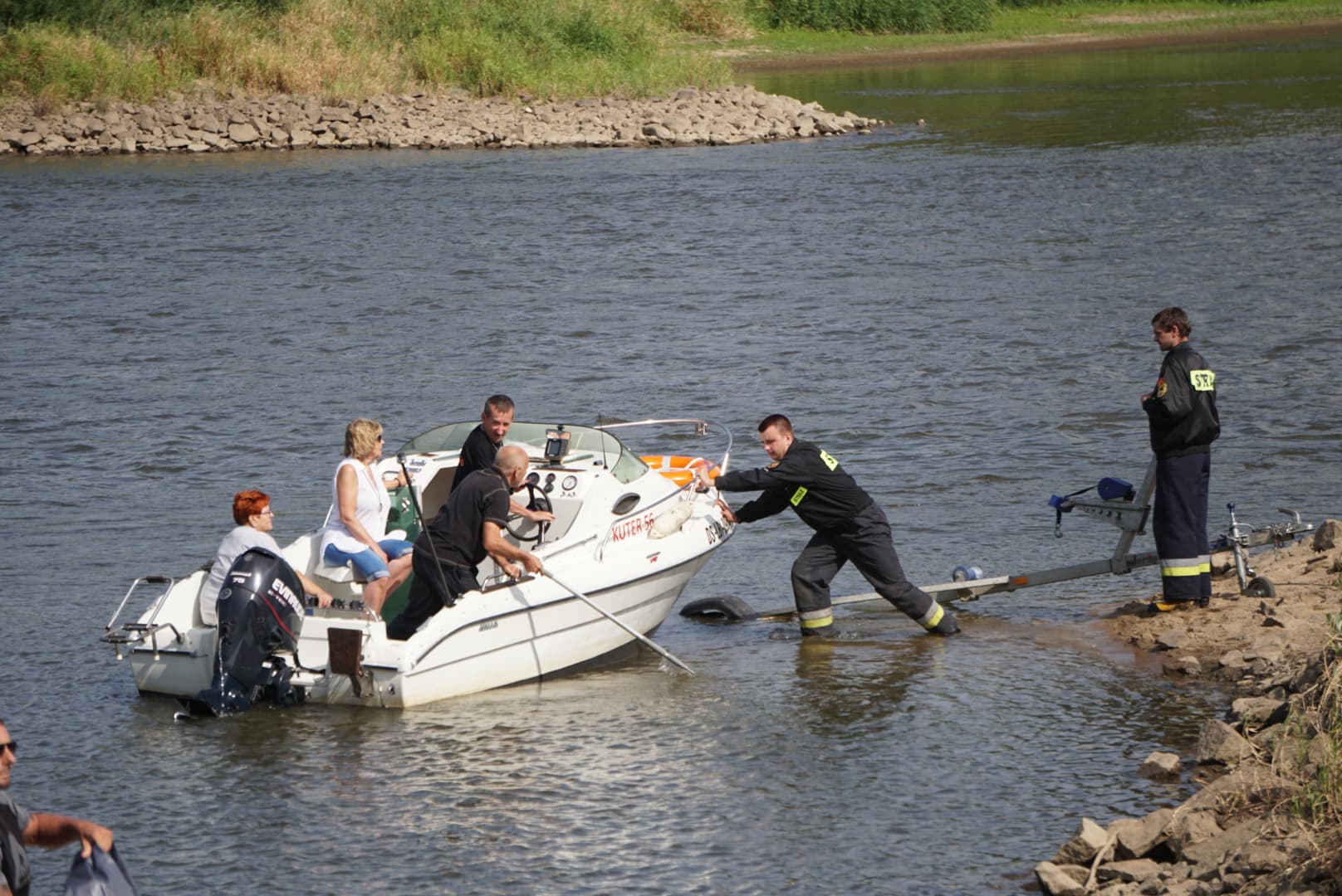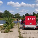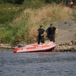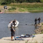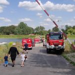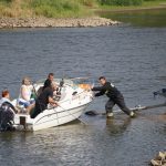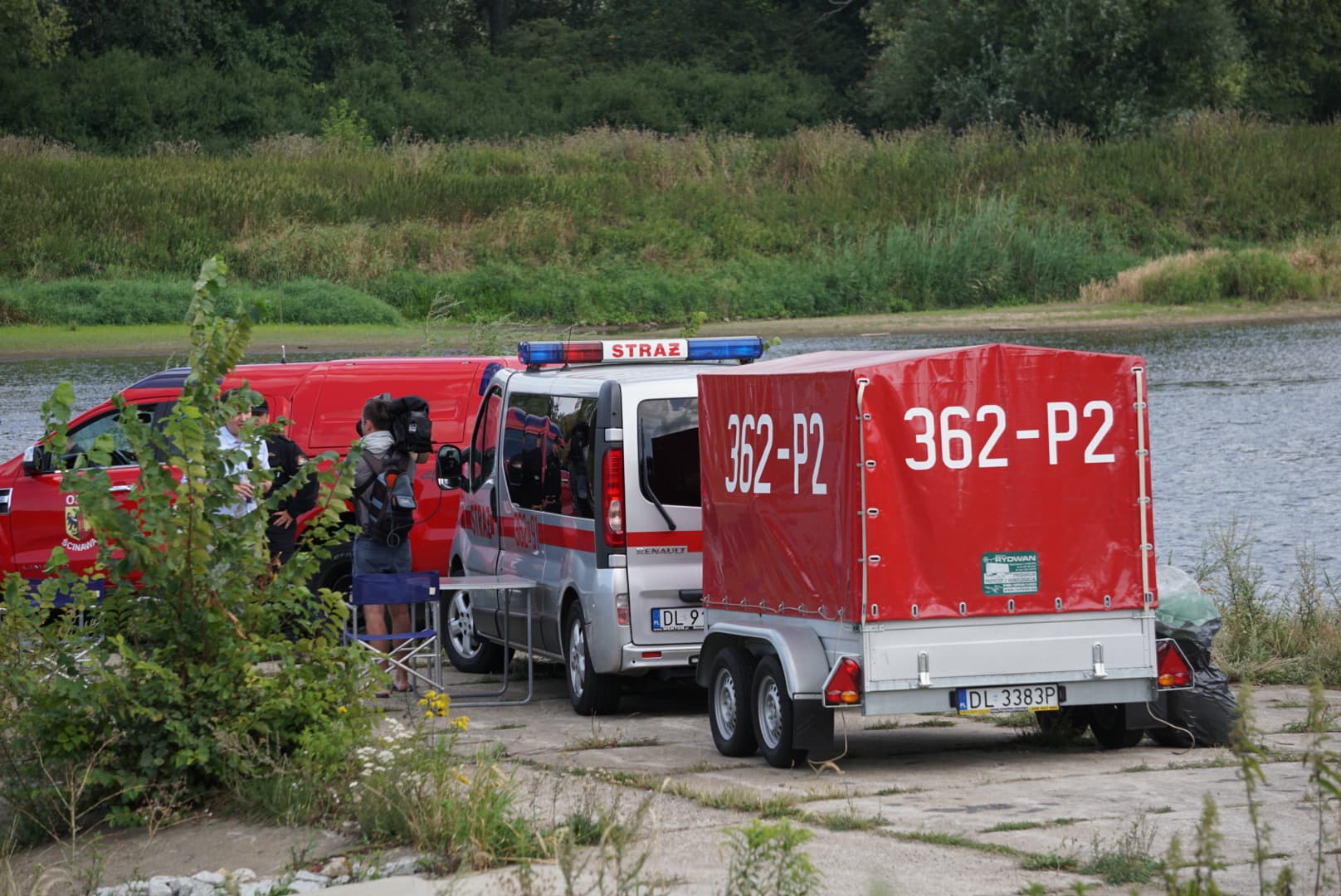 Na Odrze w Chobieni strażacy rozstawiają zapory, by substancję wyłapać. Prawdopodobnie jednak po drodze plama się rozmyła.