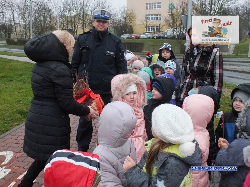 – Maluchy oceniały zachowanie pieszych na drodze. W nagrodę za prawidłowe i przepisowe przekroczenie ulicy czy poruszanie się chodnikiem, pieszy mógł otrzymać okolicznościową zakładkę oraz znaczek i życzenia świąteczne. Na popełniających błędy czekały rózgi – mówi Bogdan Kaleta z głogowskiej policji.