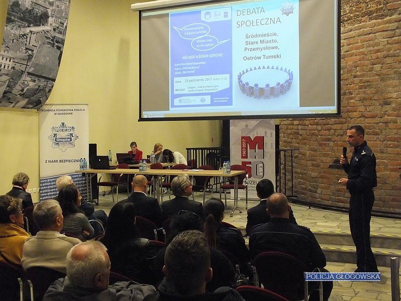 Debatę rozpoczęły krótkie prezentacje włodarza miasta Rafaela Rokaszewicza i zastępcy Komendanta Powiatowego Policji w Głogowie mł. insp. Krzysztofa Płaskonki.