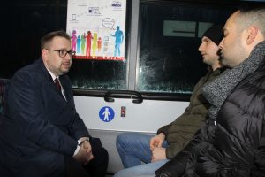 Po spotkaniu przed zakładem, włodarz gminy i pełnomocnik ds. górnictwa i komunikacji w ratuszu, razem z pracownikami nocnej zmiany, przejechali autobusem komunikacji miejskiej do Polkowic. Rozmowy dotyczyły m in. planowanych przedsięwzięć komunikacyjnych, np. uruchomienia stałego, bezpłatnego połączenia z Lubinem czy budowy lądowiska dla śmigłowców, które ma powstać przy stacji Ratownictwa Górniczo-Hutniczego w Sobinie.