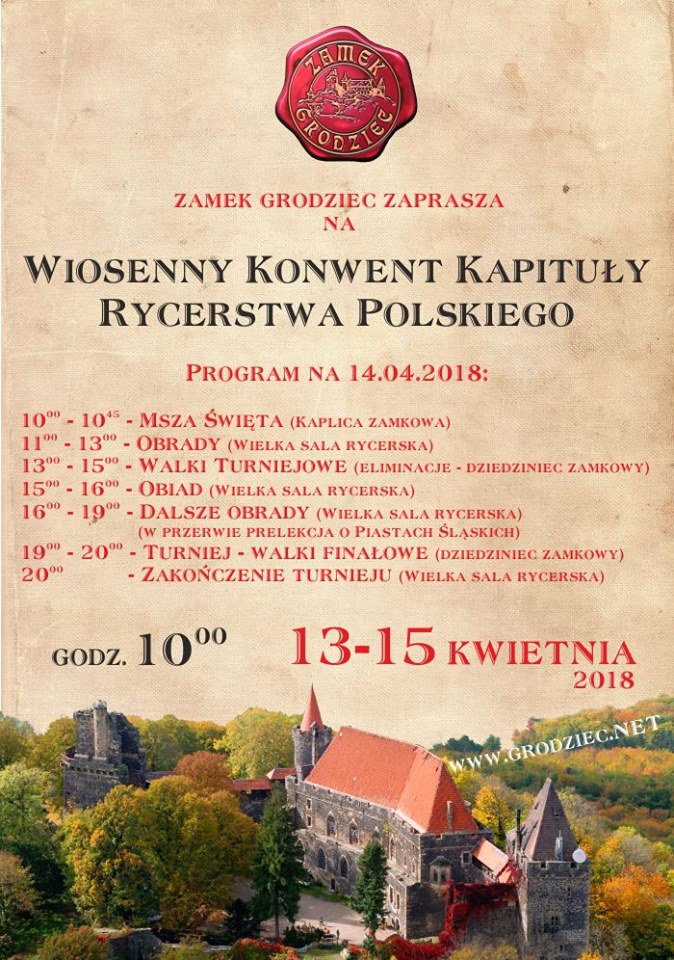 potrwa do niedzieli, jednak największe atrakcje czekaja na gości w sobotę. To rycerskie święto rozpocznie się mszą świętą odprawioną o godz. 10.00 w kaplicy zamkowej. Następnie przez dwie godziny w Wielkiej Sali Rycerskiej będą się odbywały obrady, po których na zamkowym dziedzińcu rozpoczną się pierwsze, eliminacyjne walki rycerskie.