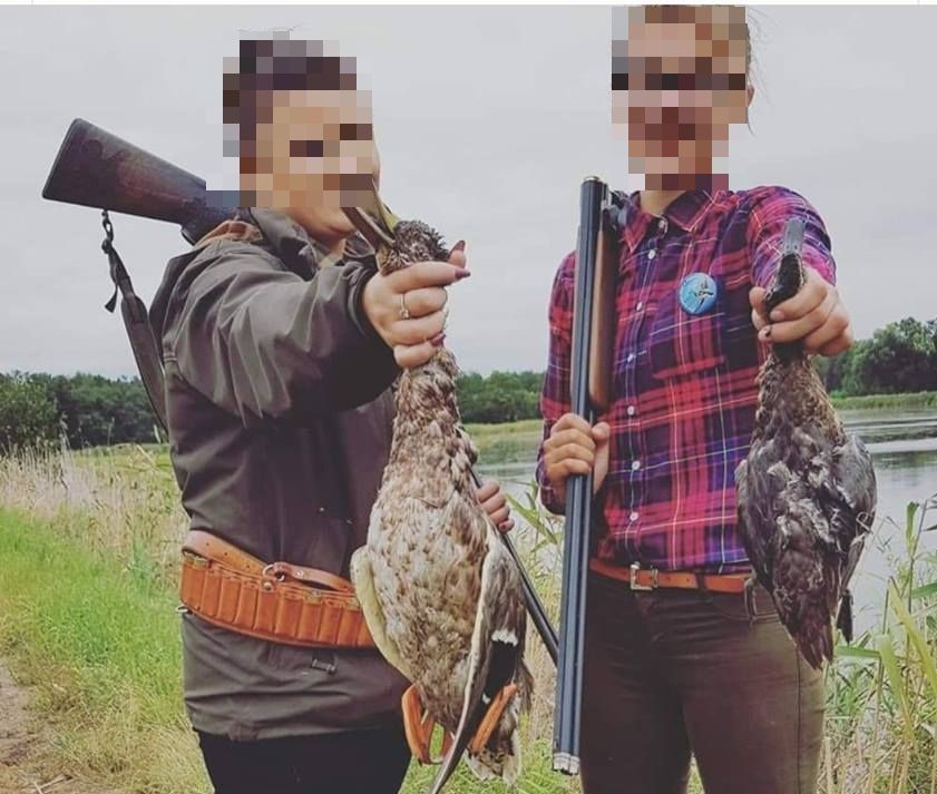 Kobieta stojąca po prawej trzyma cyrankę – gatunek objęty w Polsce ochroną (Fot. Ludzie przeciw myśliwym via Facebook)
