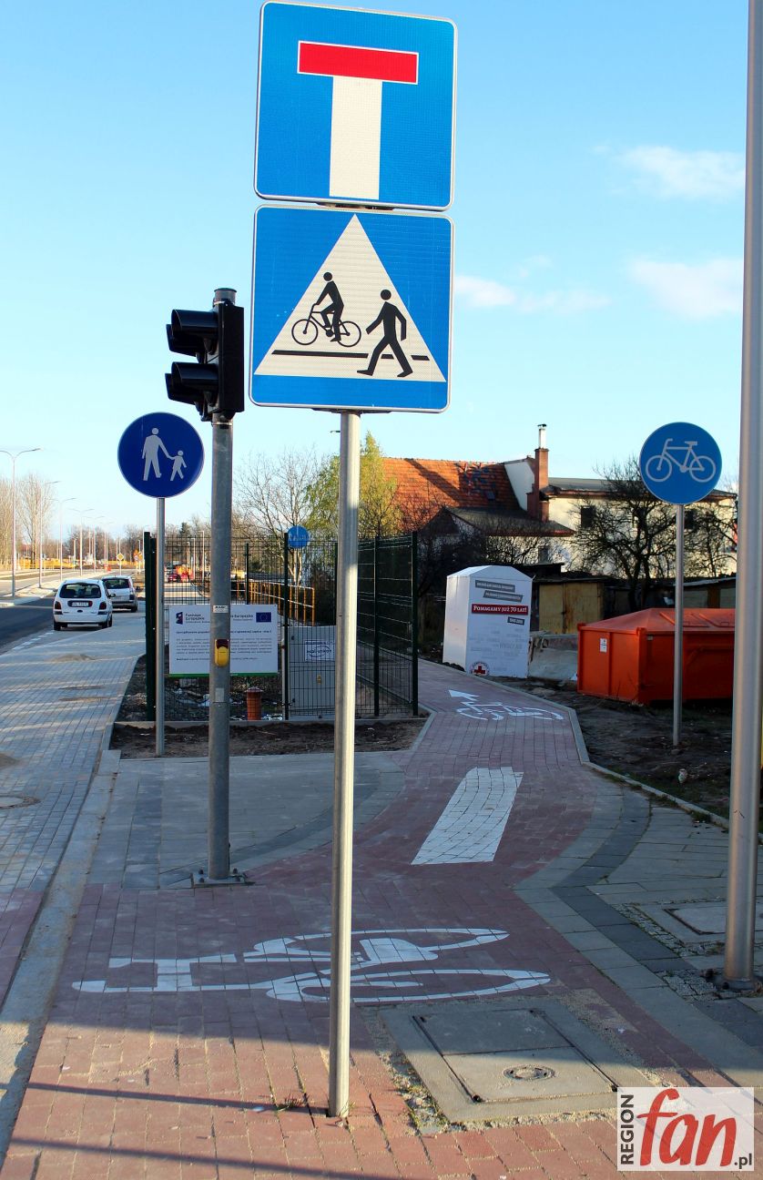 Sprawdziliśmy i rzeczywiście. Wskazane przez Czytelniczkę rozwiązanie zastosowano tam nawet w dwóch miejscach. Znaki informujące m.in. o tym, że wjeżdżając na ul. Jaworzyńską kierowcy muszą ustąpić pierwszeństwa przejazdu, stoją dokładnie na środku ścieżek. I to tuż za zakrętami, co dodatkowo utrudnia nadjeżdżającym cyklistom zorientowanie się w sytuacji zawczasu.