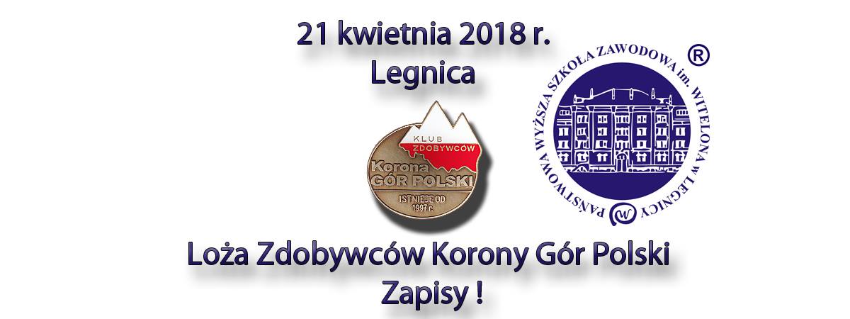 - 21 kwietnia – w Centrum Konferencyjno-Widowiskowym PWSZ im. Witelona w Legnicy odbędzie się XXX Międzywyprawowe posiedzenie Loży Zdobywców Korony Gór Polskich. Organizatorem wydarzenia jest Klub Zdobywców Korony Gór Polski. Klub zrzesza nie tylko rodaków z kraju, ale i mieszkańców kilku państw europejskich, a nawet dalekiej Syberii. Organizuje dla nich wyprawy na koronne szczyty, imprezy o tematyce górskiej, a także posiedzenia Loży Zdobywców, weryfikującej dokonania kandydatów na Zdobywców.