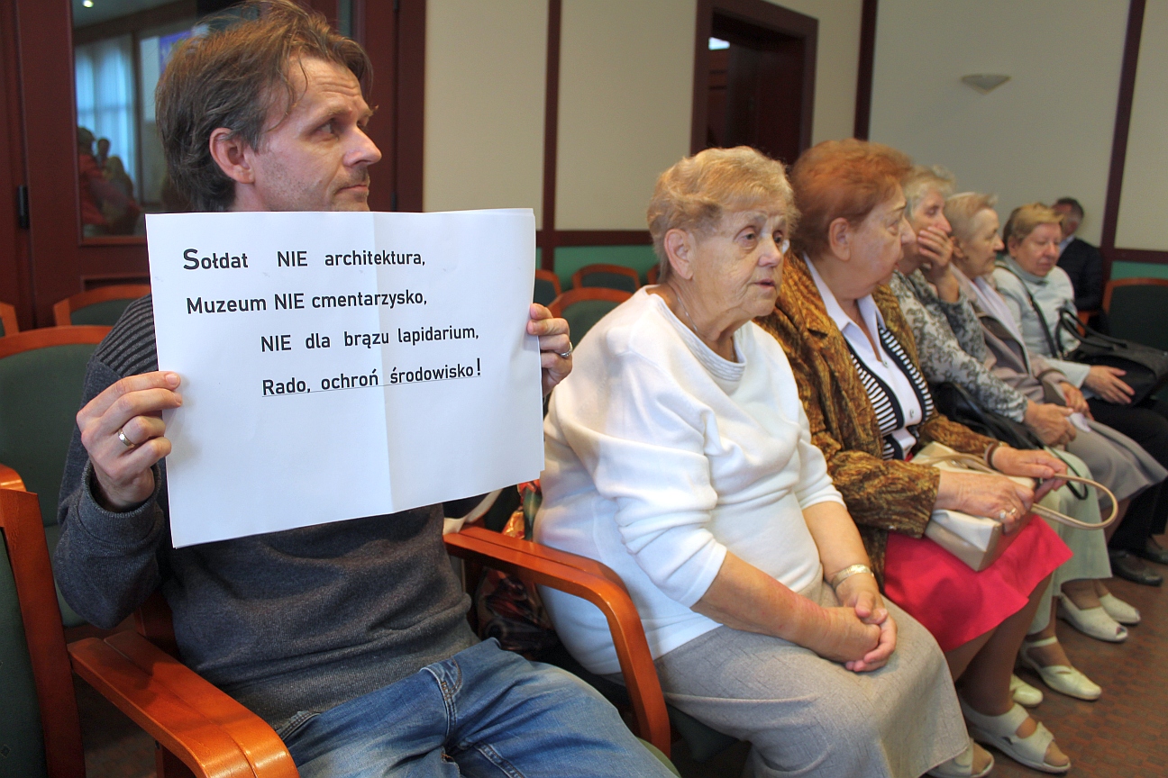 Swoją opinię na temat przyszłej lokalizacji zdemontowanych już elementów pomnika radni mogli wyrazić głosując nad przyjęciem zmian w budżecie miasta. W uchwale zapisano korekty, a jedną z nich była właśnie ta dotyczącego niesławnego monumentu. Swoją dezaprobatę dla tego pomysłu jeszcze przed rozpoczęciem obrad wyrazili licznie zgromadzeni na sali goście, którzy prezentowali transparenty, m.in. o treści URSO (Usuń Resztki Sowieckiej Okupacji – przyp. red.).